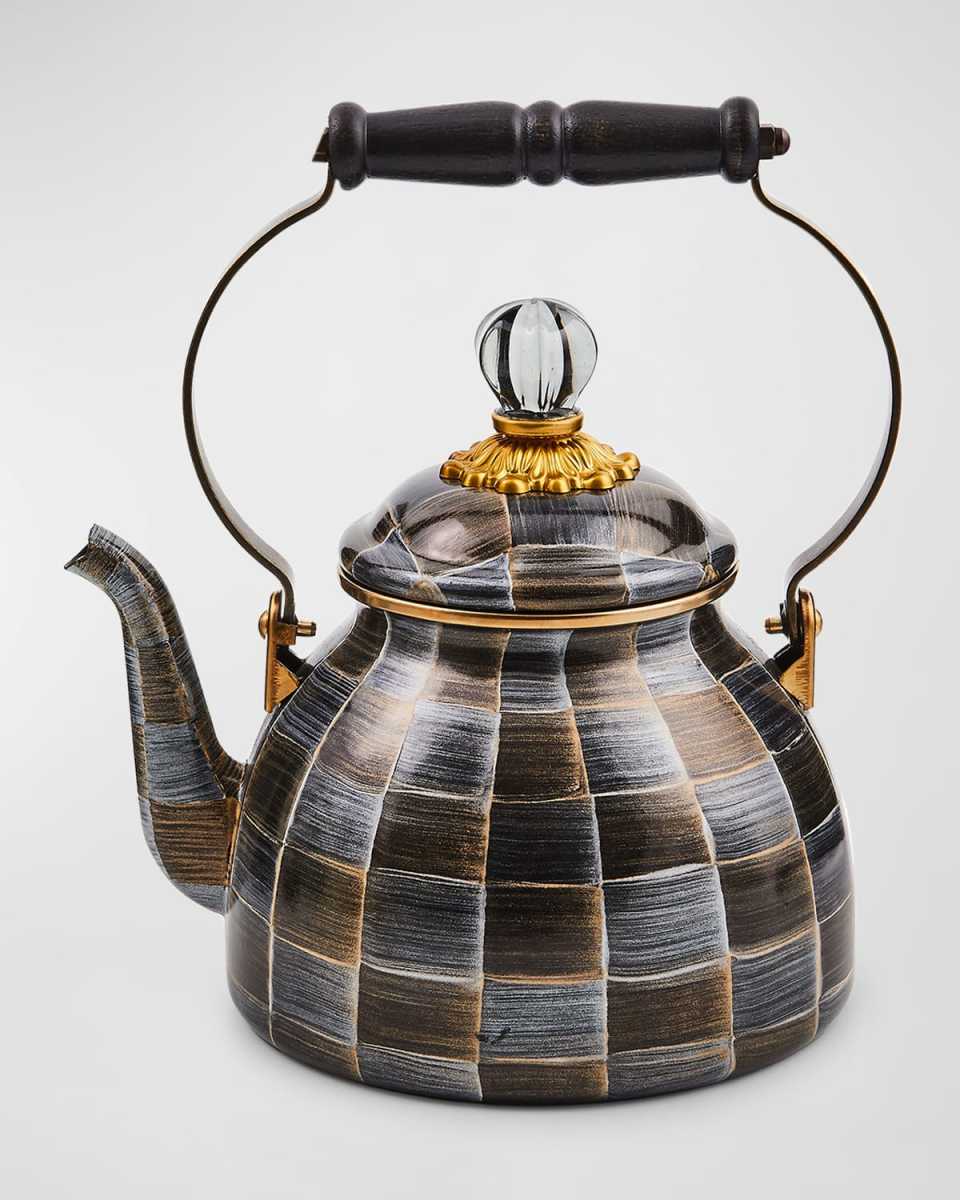 Handcrafted of a heavygauge, handglazed steel underbody embellished with handapplied transfers, rimmed in bronzed stainless steel Finished with a wood top handle and lid with a glass finial Pieces may vary due to the handmade nature of each product Approx. 10.25"L x 10"W x 13"T Holds 2 quarts Item weight, 2.6 lbs. Imported
