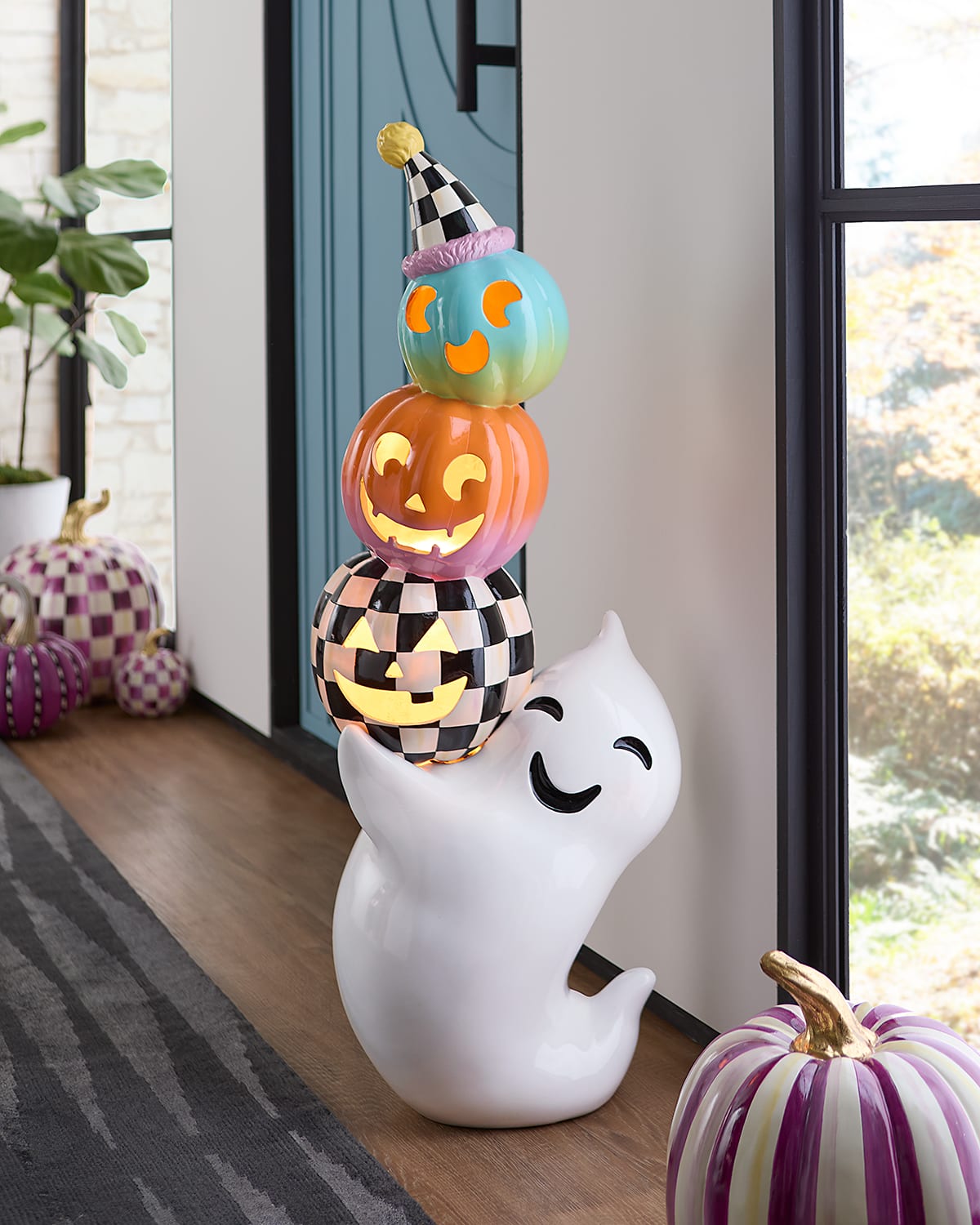 Trick or Treat Illuminated Ghost with Pumpkins Figurine
