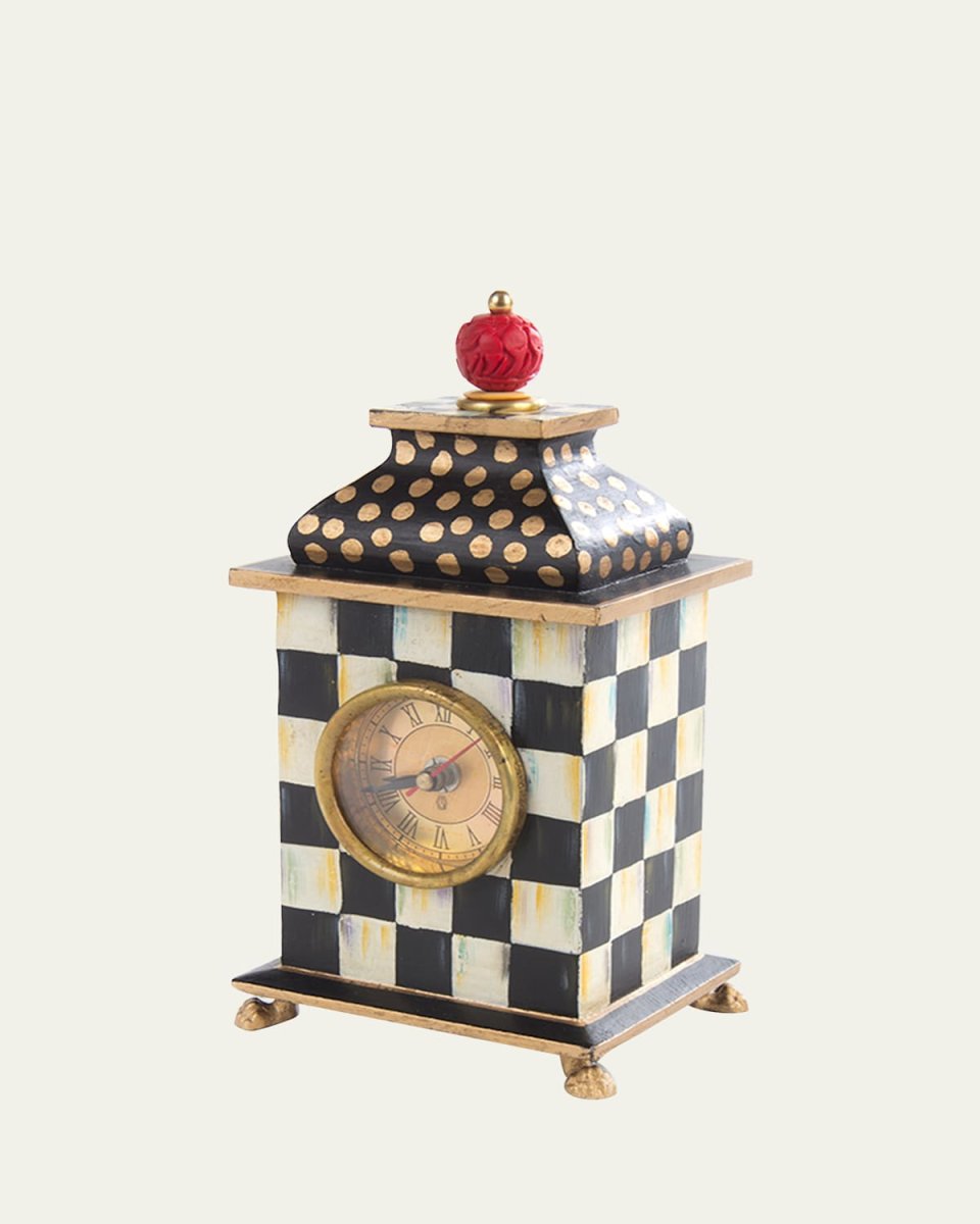 Desk clock made of iron. Hand painted. Brass hardware. 5.75"W x 4.75"D x 9.25"T. Imported.