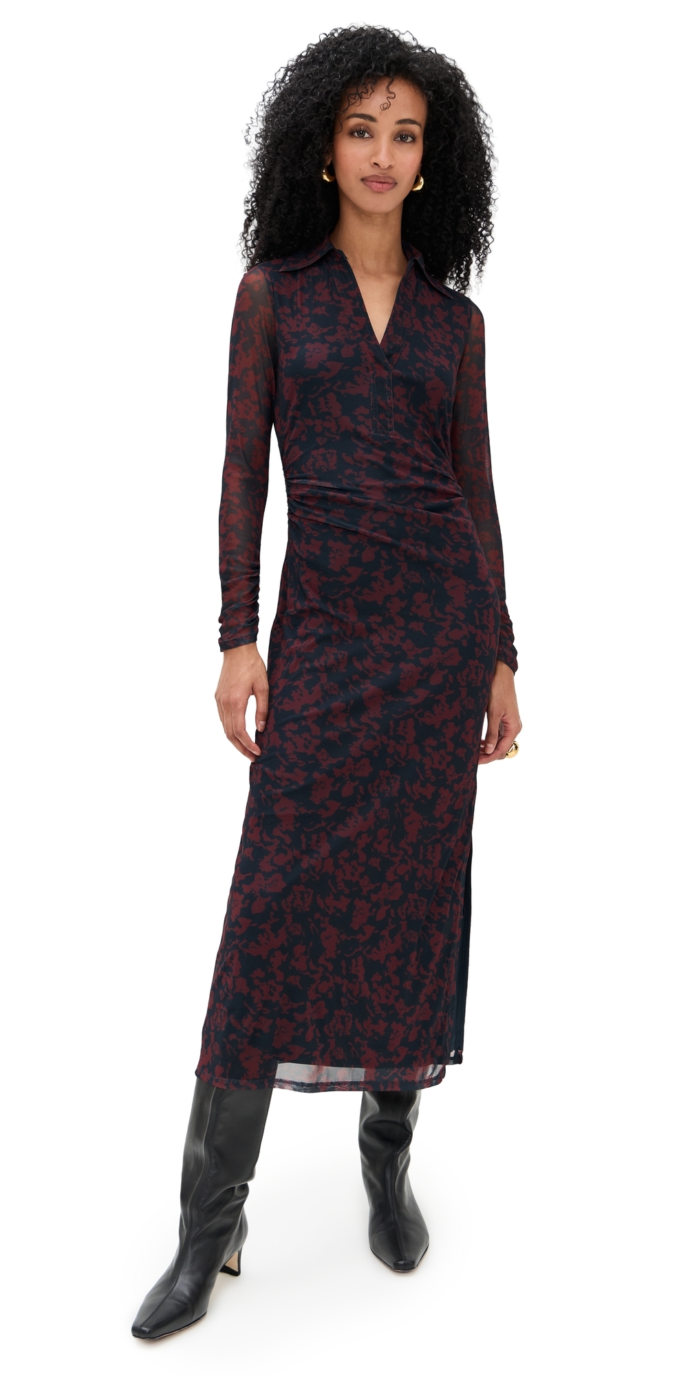 Long Sleeve Polo Midi Dress Abstract Flora Dark Navy