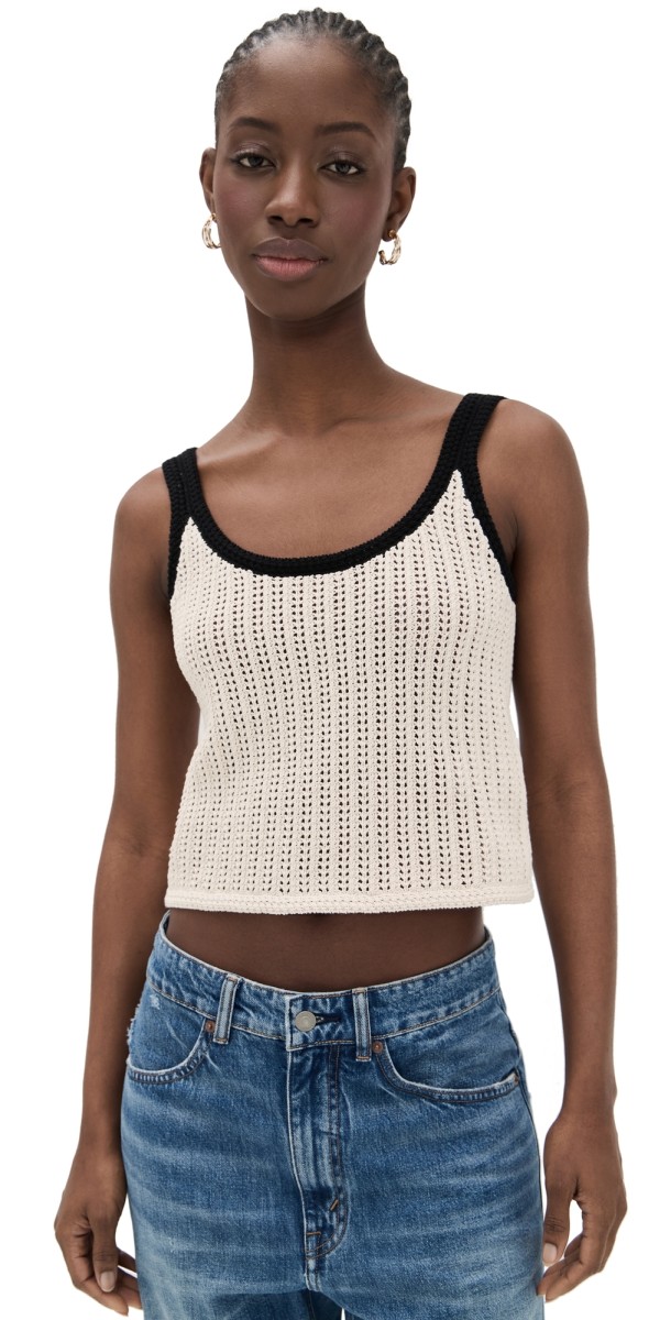 Fabric: Lightweight open knit. Contrast trim. Scoop neck. Sleeveless. Shell: 100% cotton. Wash cold. Imported, China. Measurements: Measurements from size XS Length: 17.75in / 45.0cm, from shoulder