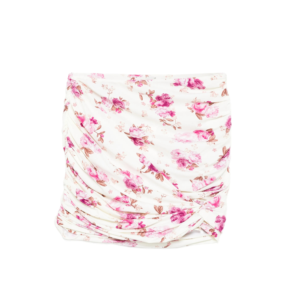 powder pink floral print ruched detailing knot detail high waist gathered detailing Be mindful to try on swimwear over your own garments.