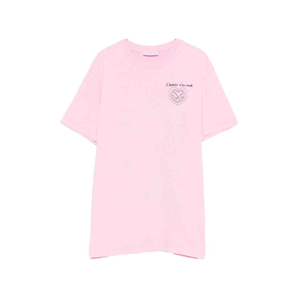 pink lettering round neck short sleeves
