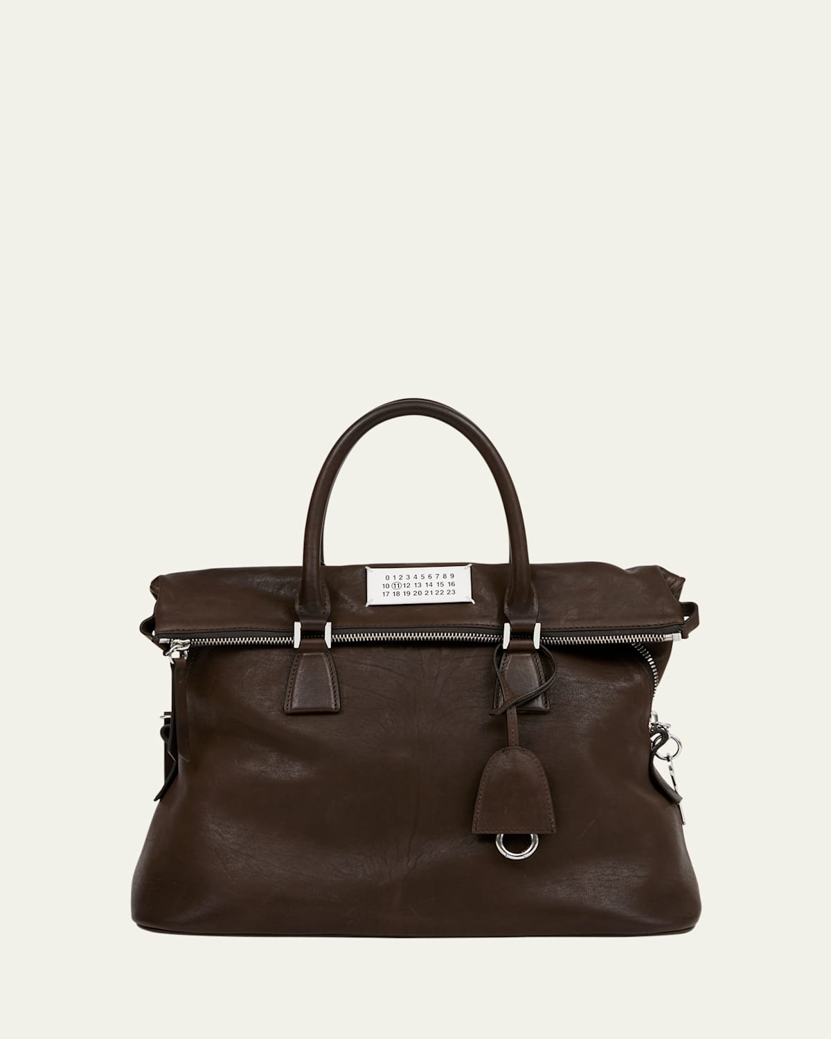 Maison Margiela "5AC Loved To Death" medium top handle bag crafted in calf leather Rolled top handles Removable key ring tag Zip top closure Front logo label Lining: Cotton Approx. 9.4"H x 13.7"L x 6.7"D Spot clean, wipe clean Made in Italy
