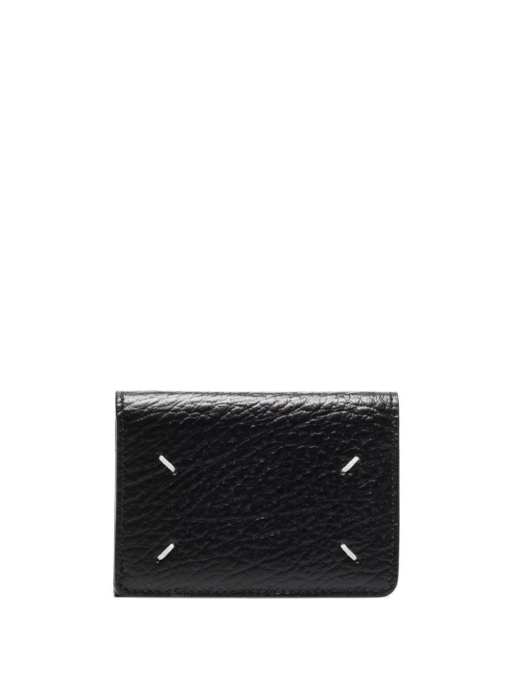 Black leather four-stitch envelope wallet from Maison Margiela featuring signature four-stitch logo, envelope design, debossed internal logo and internal card slots.
