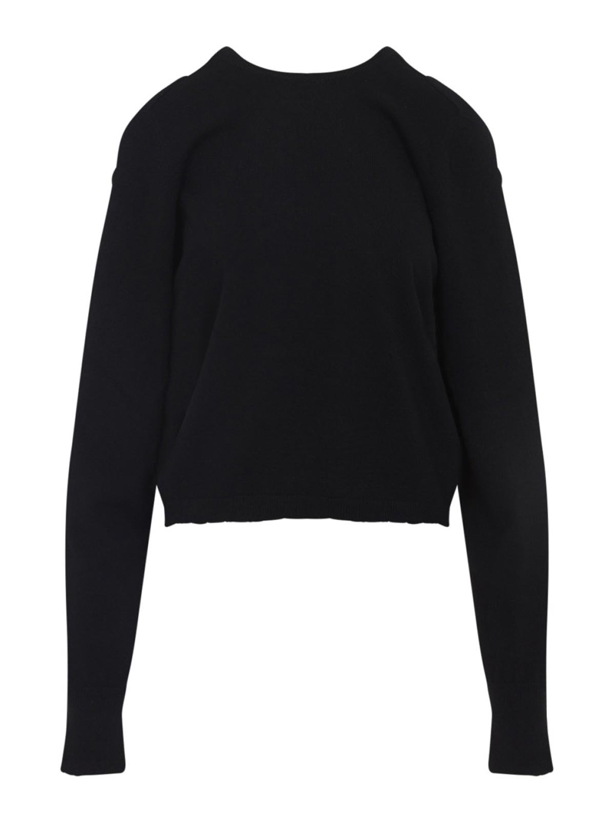 Pull à col rond noir Maison Margiela Pull noir pur, col rond, dos rond, coutures emblématiques blanches contrastantes, épaules tombantes, manches longues, poignets côtelés, ourlet droit
