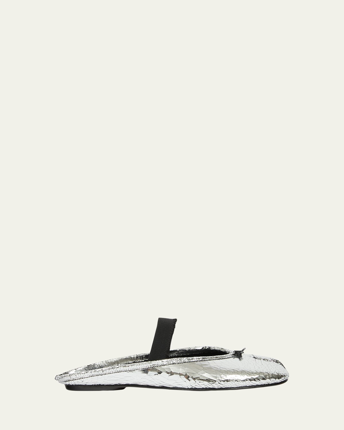 Maison Magiela "Tabi" ballerina mules crafted from calf leather with a broken mirror effect finish and signature split toe detail Flat heel Round toe Distressed elastic Mary Jane strap Easy slide style Leather lining and outsole Spot clean, wipe clean Made in Italy
