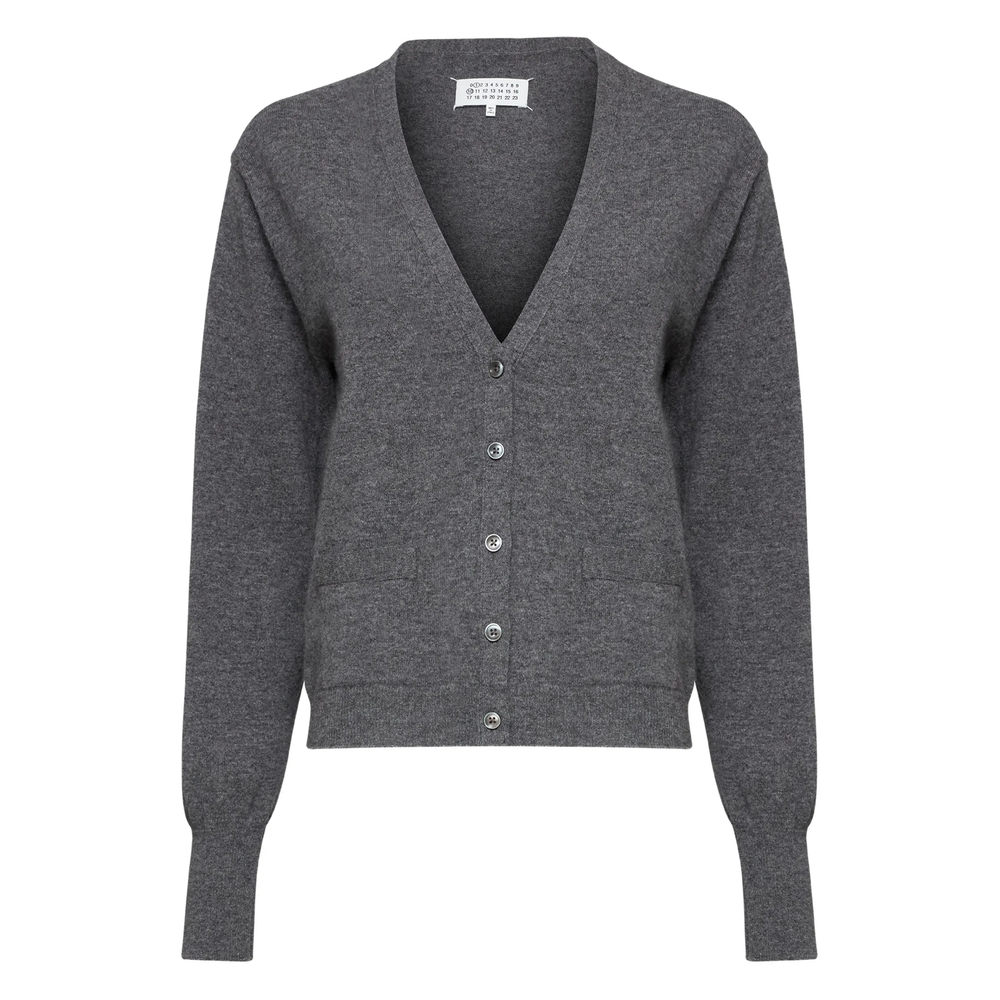 grey V-neck patch pockets button fastening long sleeves ribbed cuffs
