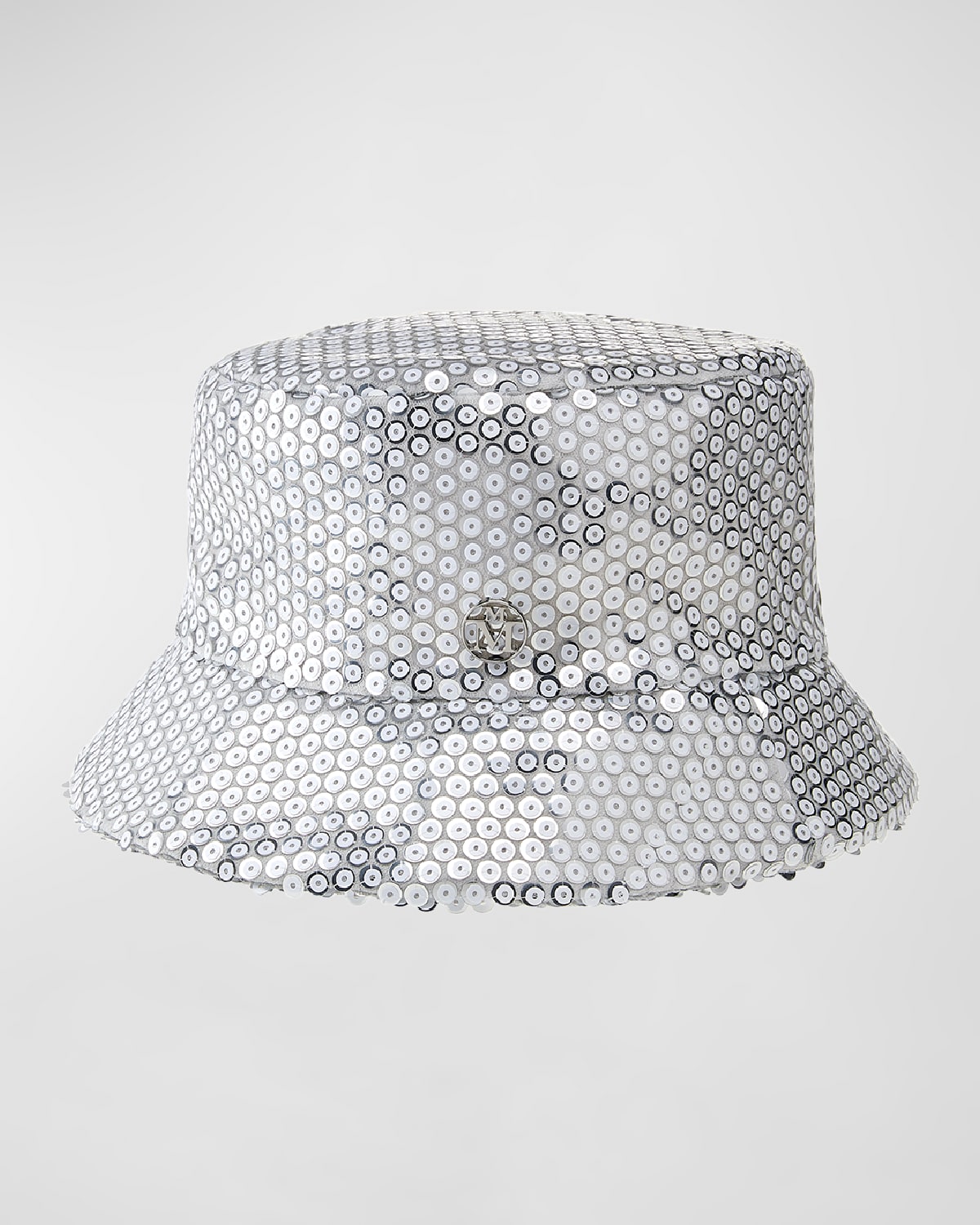 Maison Michel "Axel" sequined bucket hat in polyester Flat crown Monogram charm on the break Downturned brim Item Weight (Lbs.): 0.4 Made in Italy