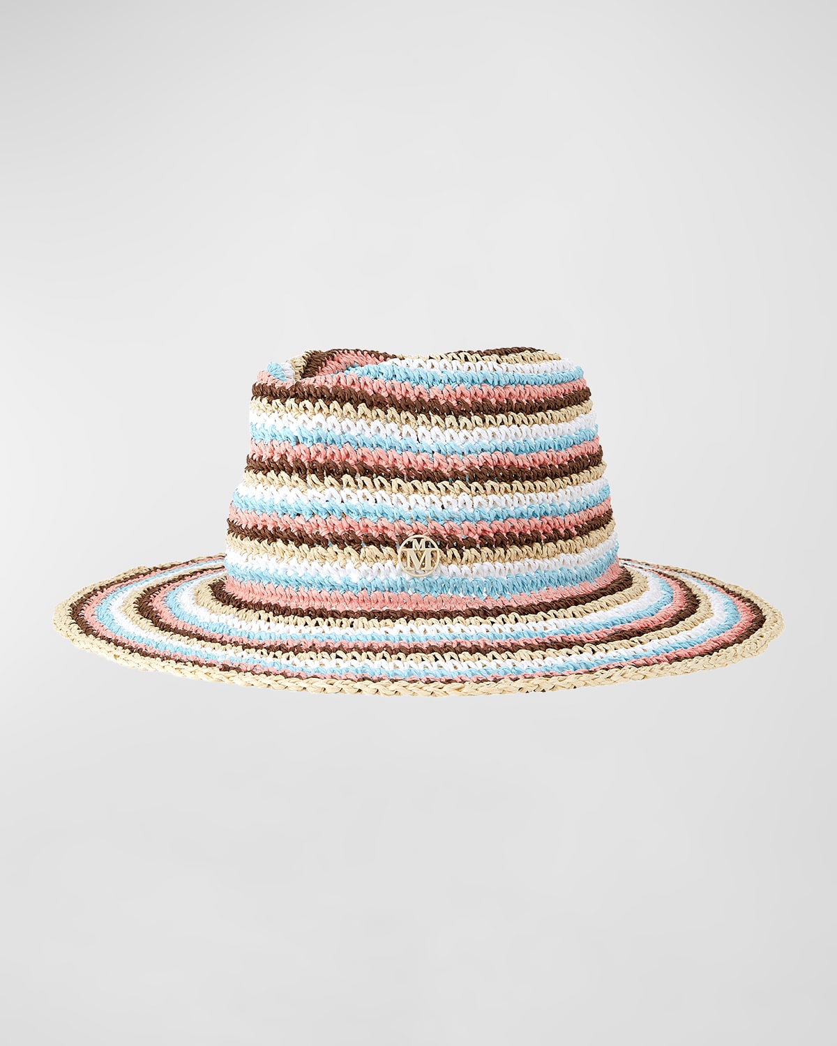 Maison Michel "Charles" striped crochet fedora in paper straw Approx. 4.7"T Pinched crown Monogram charm on the break Flat, wide brim Item Weight (Lbs.): 0.5 Made in Italy