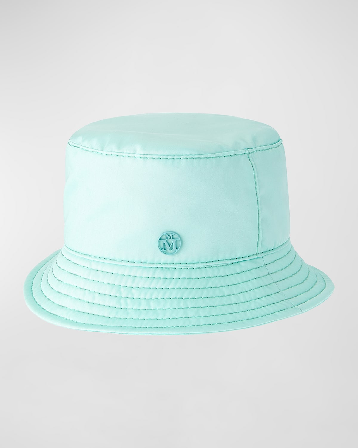 Maison Michel "Jason" seasonal iconic bucket hat in cotton Flat crown Monogram charm Tonal stitching Downturned brim Made in France