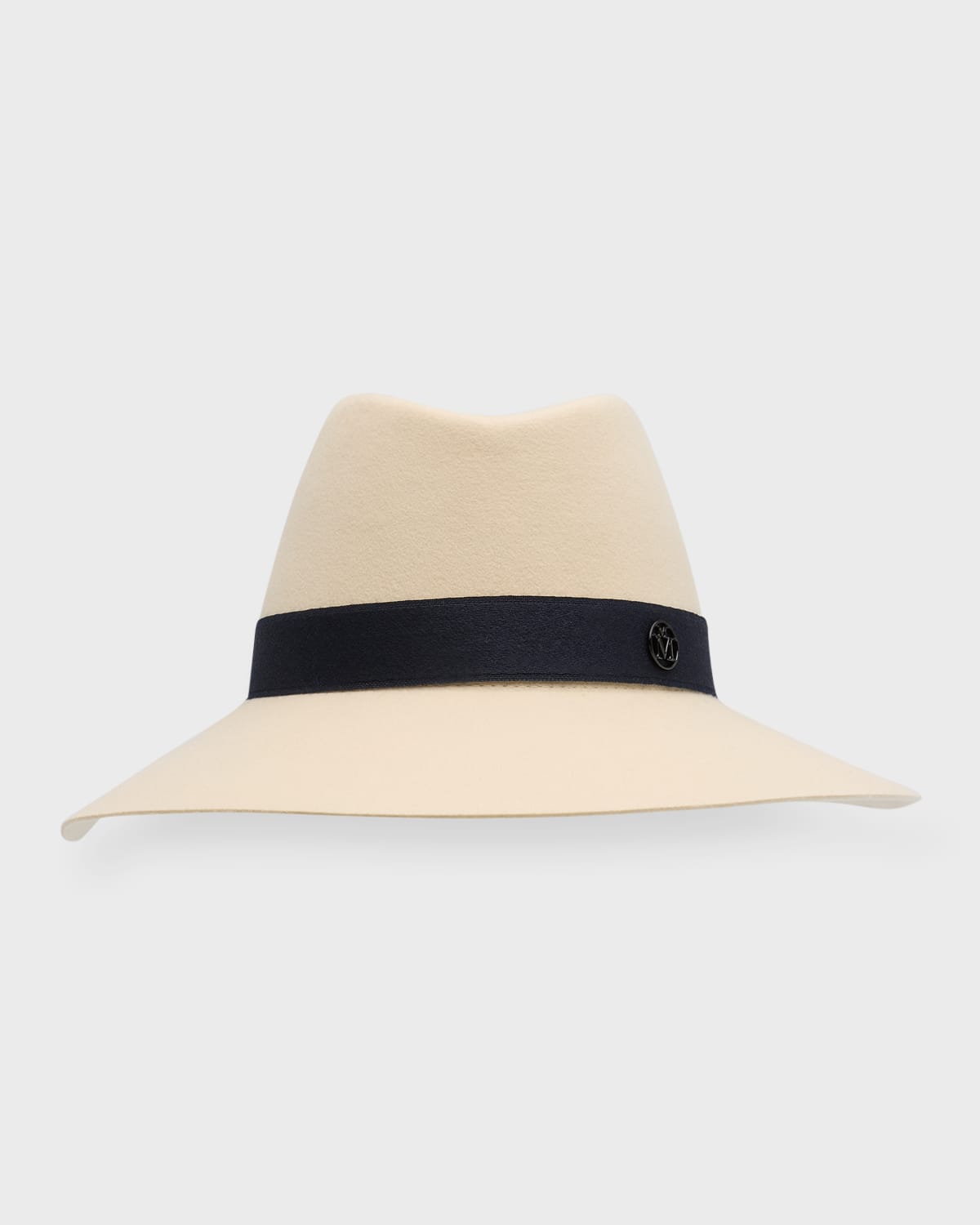 Maison Michel "Kate" fedora in wool Center dent crown Band at break; logo charm Wide, downturned brim Spot clean Made in Italy