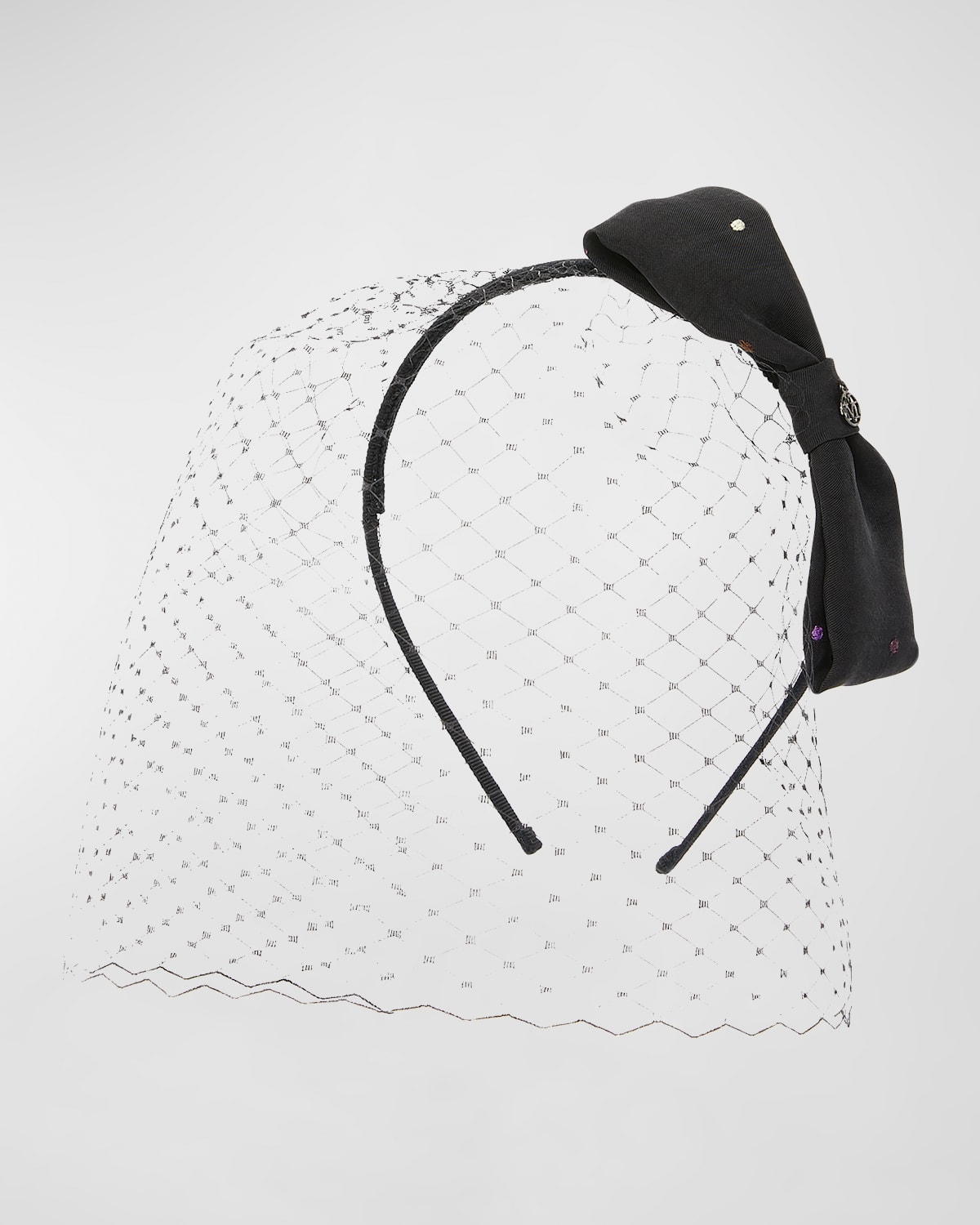 Maison Michel "Kylie" headband in viscose, cupro, nylon/polyamide, and cotton Bow and veil accent Logo charm Made in Italy