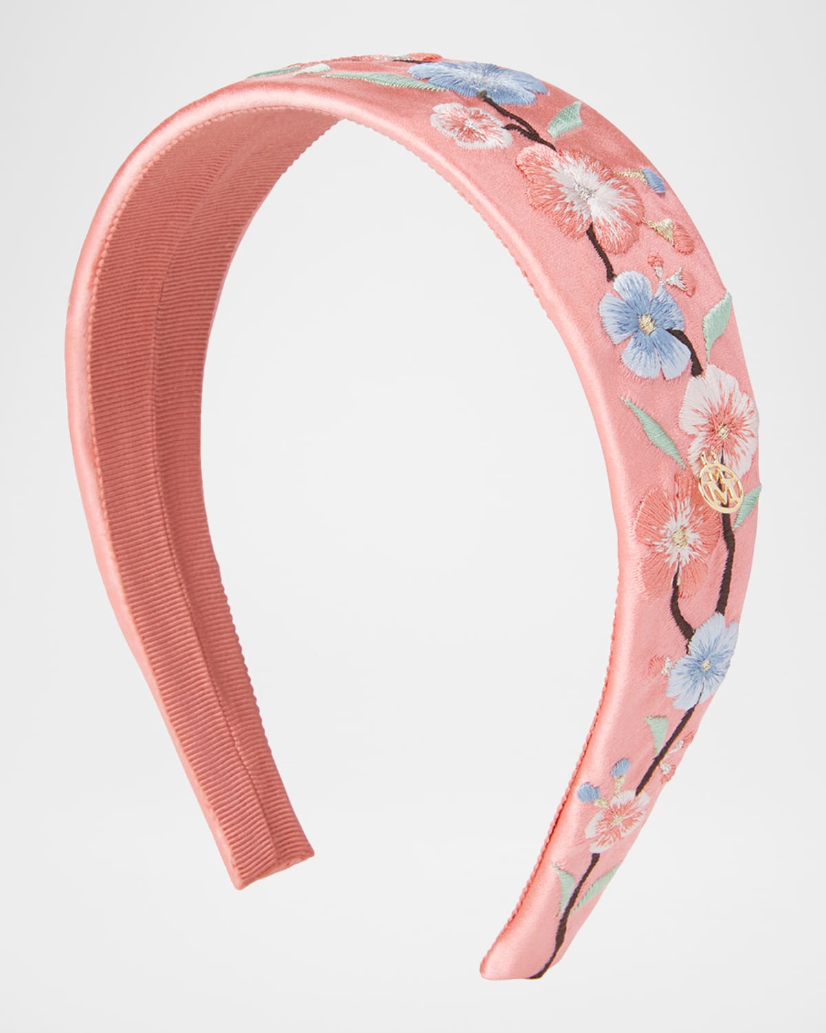 Maison Michel "Miwa" satin headband embroidered with cherry blossoms One size fits most Spot clean Item Weight (Lbs.): 0.3 Silk/viscose Made in France