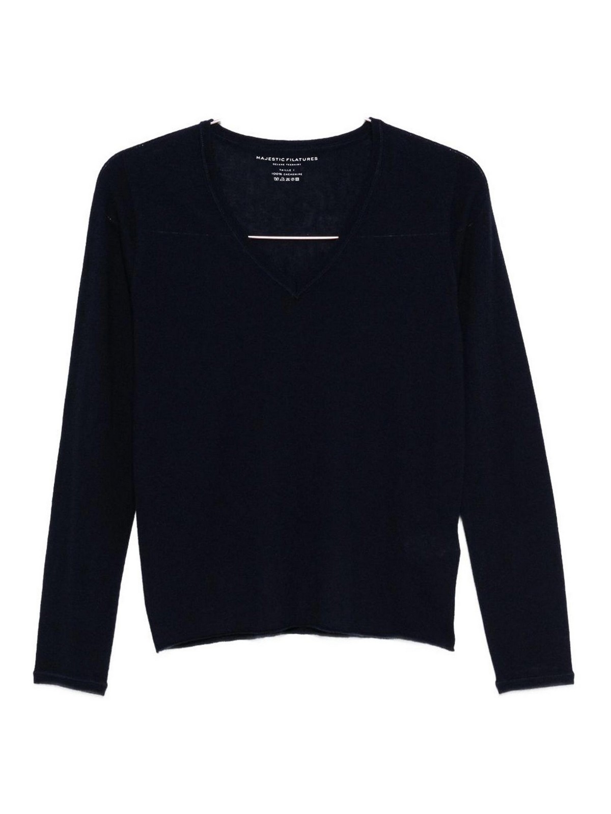 Col en V bleu, manches longues et poignets côtelés