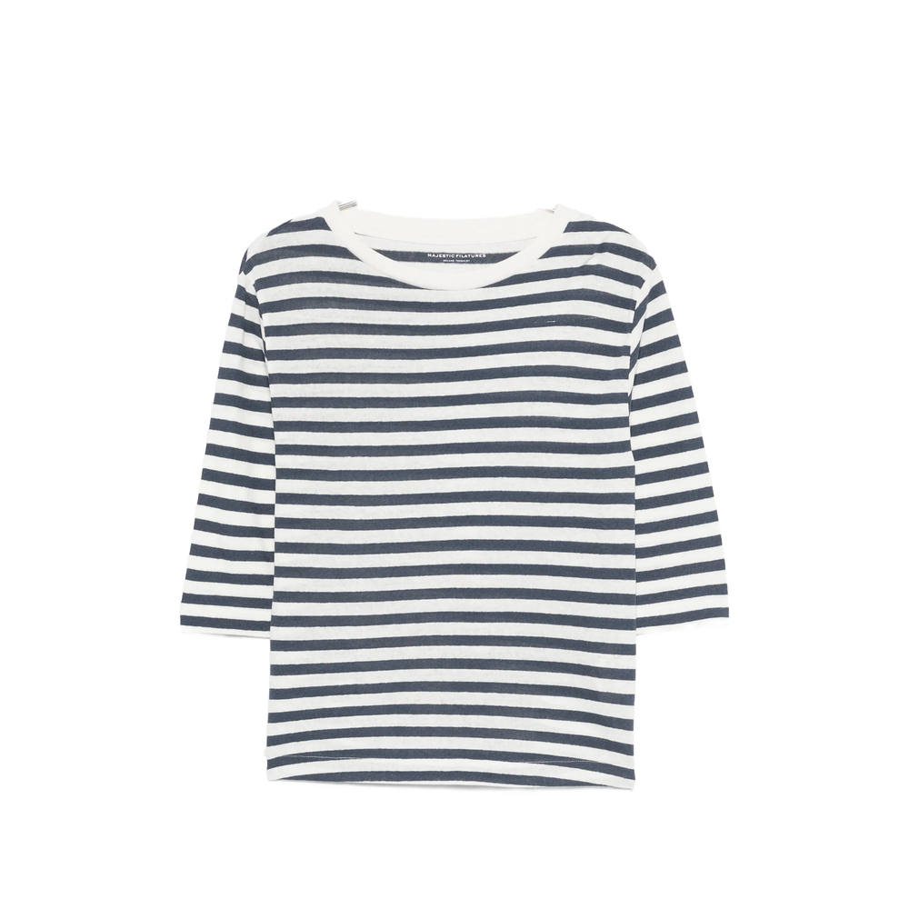 blue and white stripe pattern crew neck three-quarter sleeves