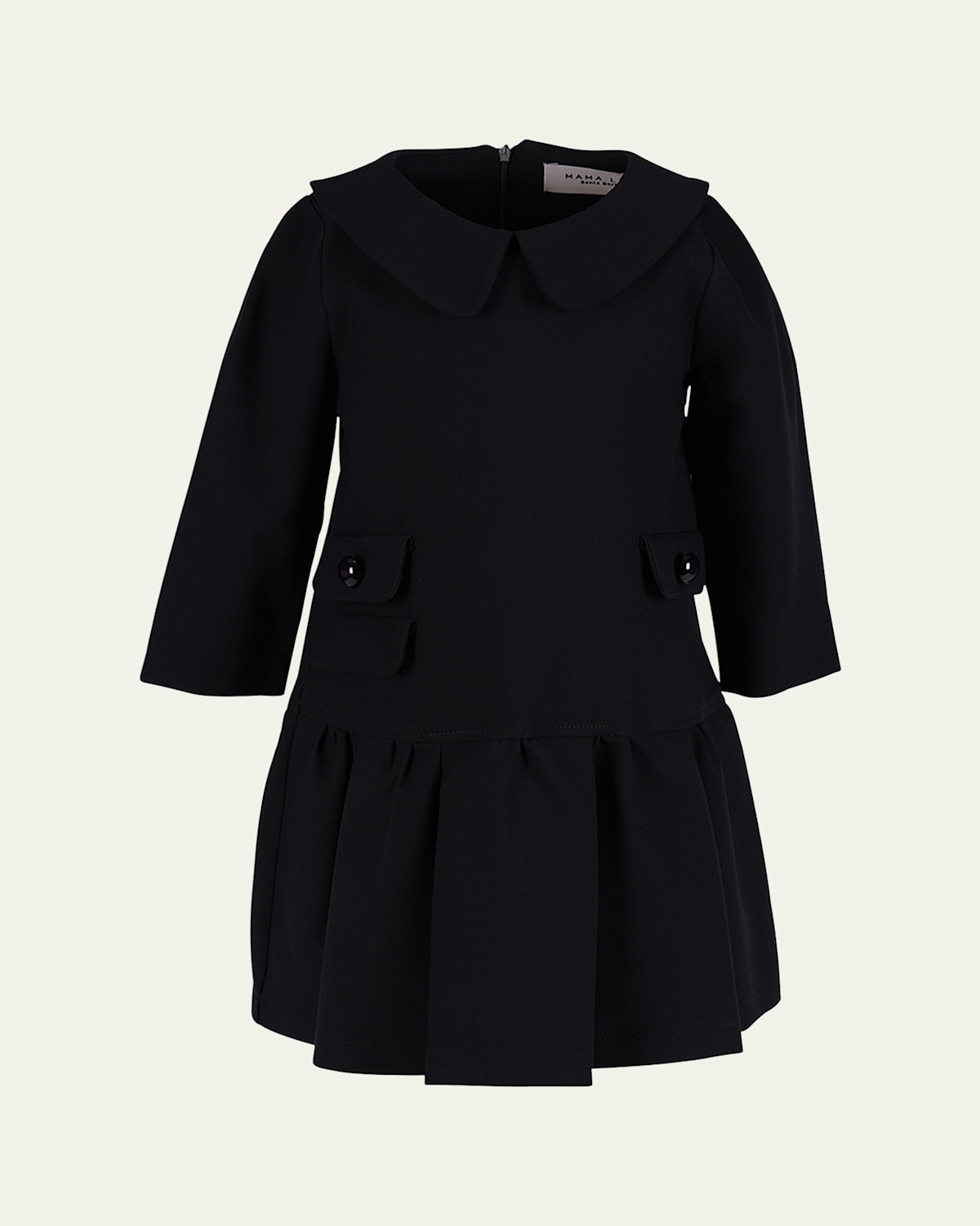 Mama Luma classic Peter Pan collared dress Round collar 3/4 sleeves Faux flap pockets Zip closure at back Hem falls above the knee Polyester/viscose/cotton Lining: Cotton Do not iron, hand wash or dry clean, machine wash cold Trim: Piping Imported