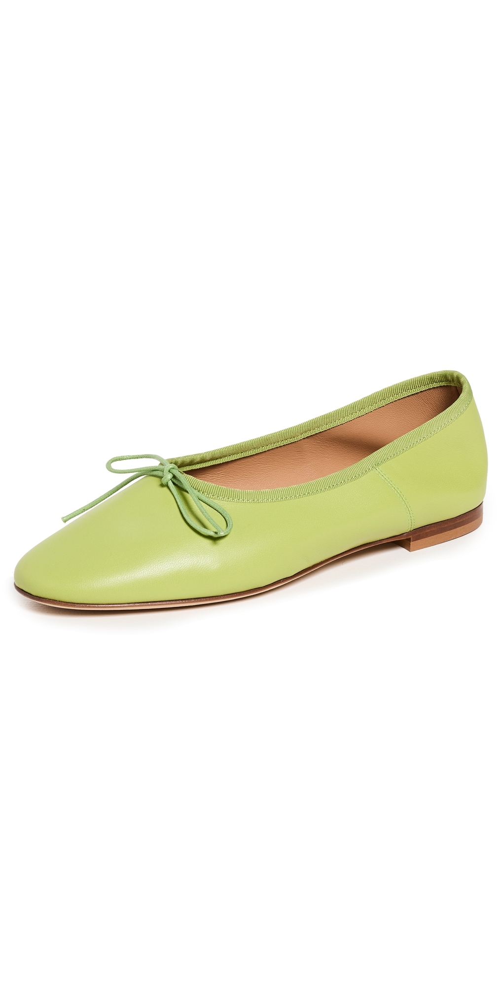 Upper: Lambskin. Grosgrain trim at topline. Bow at vamp. Lining: Leather. Slip on. Round toe. Leather sole with rubber heel cap. Made in Italy. This item cannot be gift-boxed.