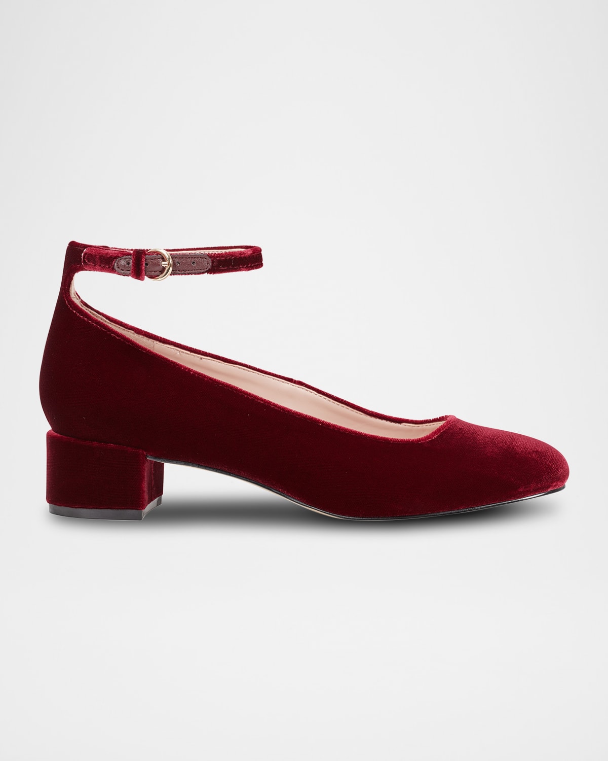 Marc Fisher LTD soft suede ballerina pumps 1.38 in / 35 mm block heel Round toe Adjustable ankle strap Manmade outsole Lining: Synthetic Spot clean Imported