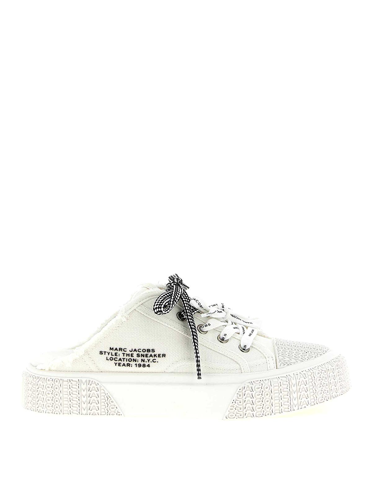 The Sneaker Mule Slide, en baskets usagées, effet lacet, milieu texturé vers le haut avec monogramme jaune marguerite
