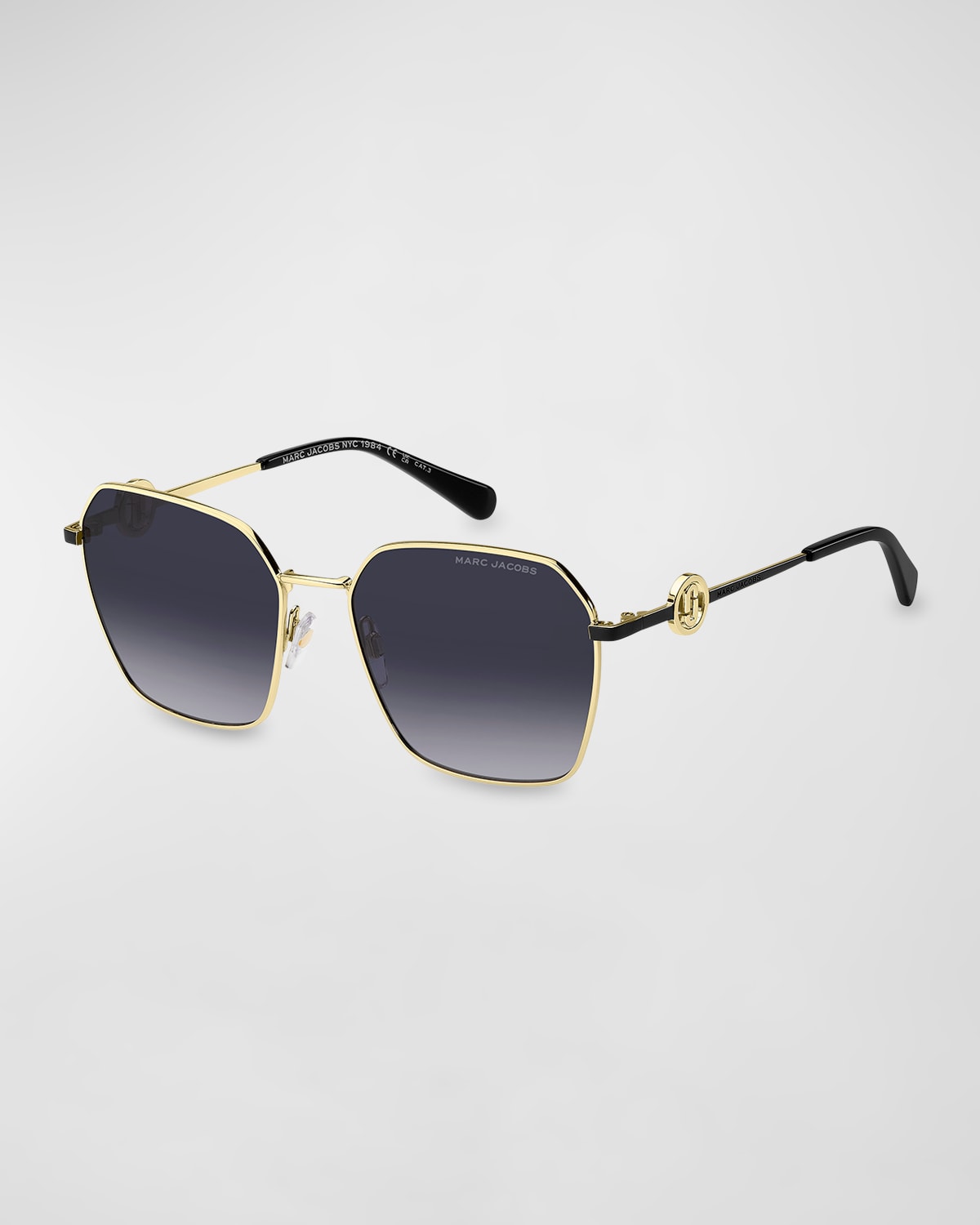 Marc Jacobs "Marc 729S" square sunglasses in metal Lens/bridge/temple (in mm): 5817140 Adjustable nose pads Logo on temples Thin, tapered arms Capped earpieces Wipe clean 100% UVA/UVB protection Imported