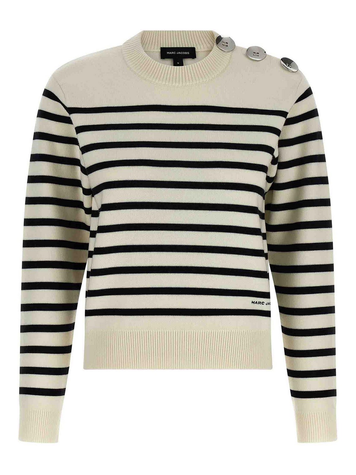 pull à rayures bretonnes avec col rond et bouton sur l'épaule, manches longues