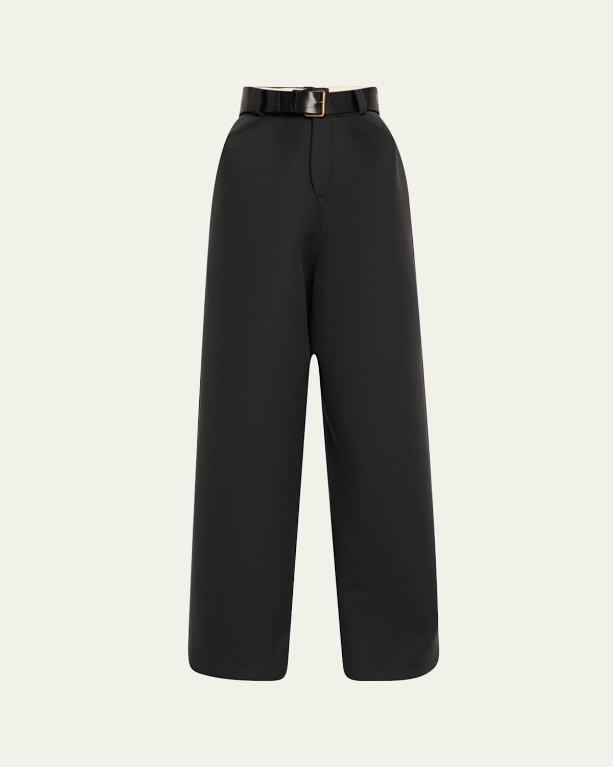 From the Spring '25 collection, these Marc Jacobs Runway pants are crafted from a woolblend with padded hips for an exaggerated sculptural twist to classic tailoring High rise Angled side slip pockets Back welt pockets Wide legs Full length Hook/zip fly; belt loops Virgin wool/polyurethane/polyester Fill: Polyester Made in USA from imported materials
