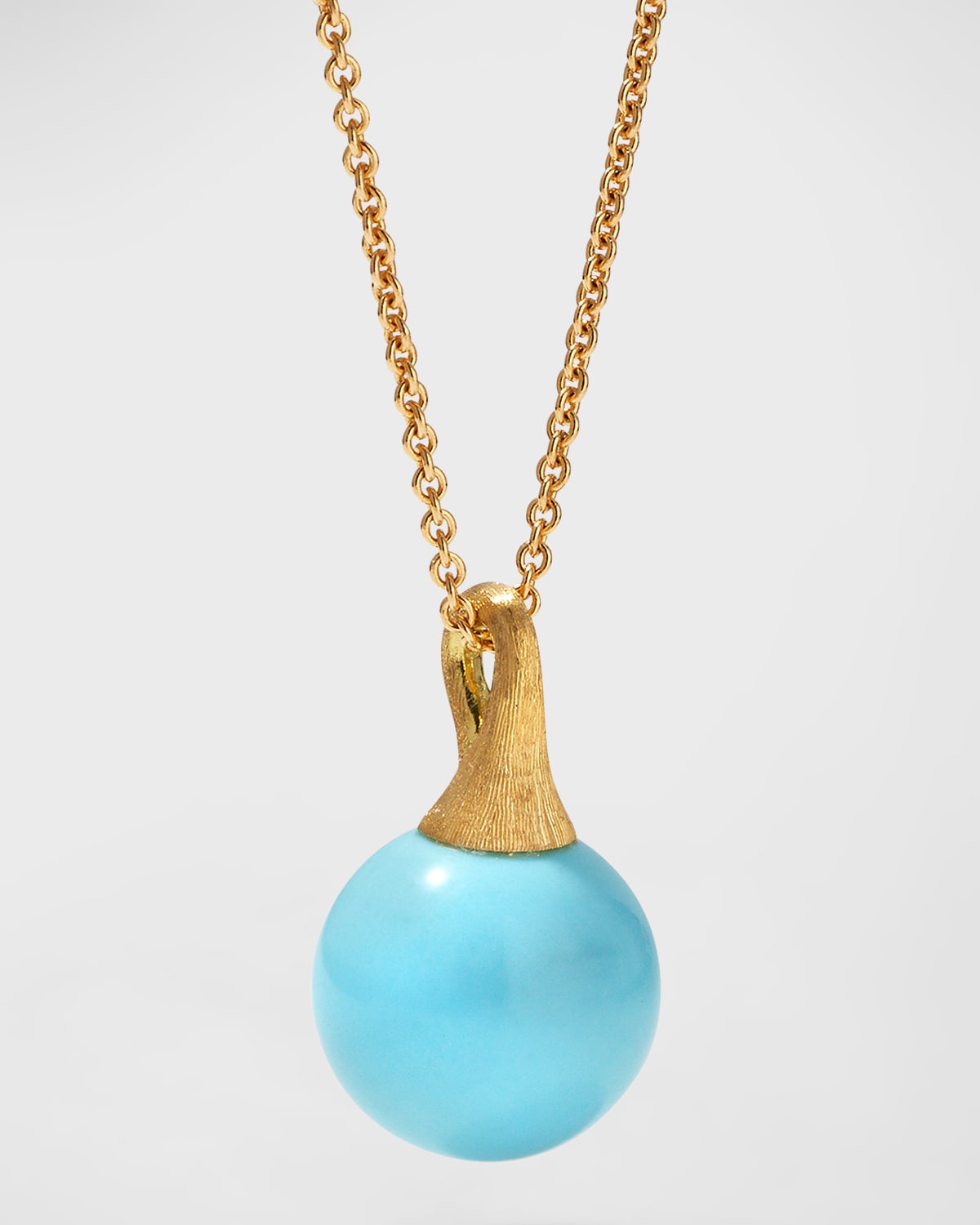 Marco Bicego necklace from the Africa Collection. Handengraved 18karat yellow gold hardware. Cable chain with round turquoise pendant. Approx. 15.25"L.