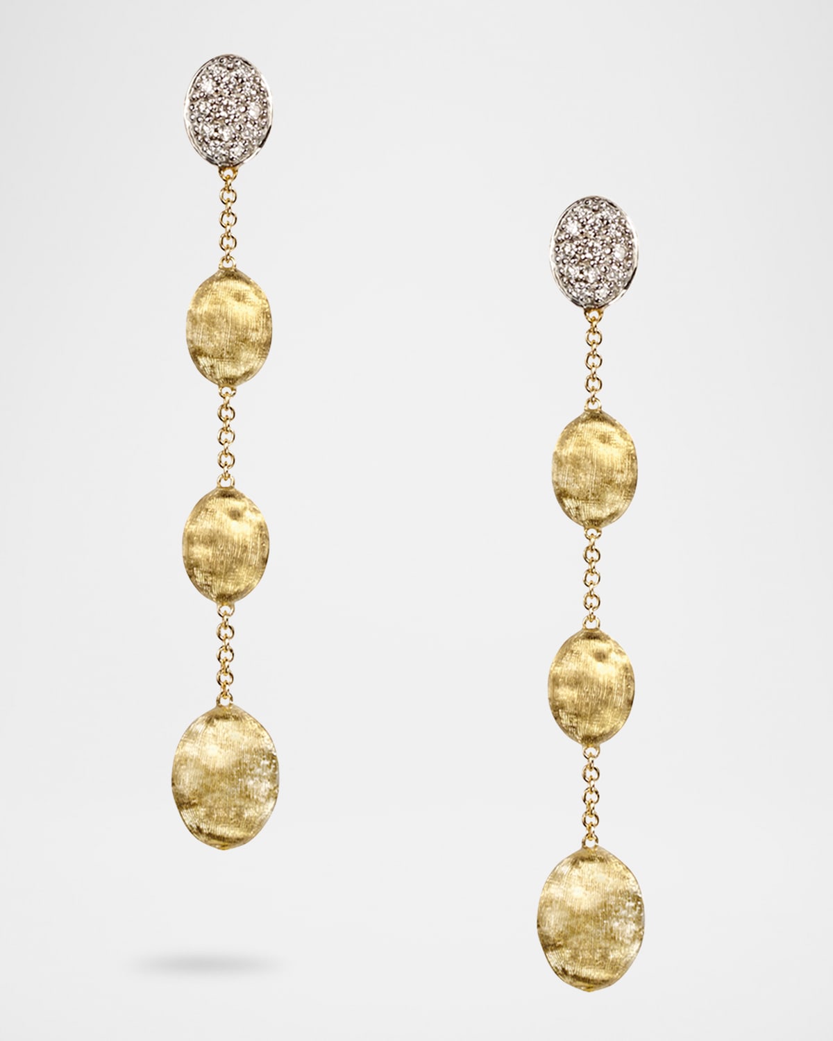 Marco Bicego drop earrings from the Siviglia Collection Handengraved 18karat white and 18karat yellow gold Pavéset white diamonds Diamond total carat weight: 0.2 For pierced ears Professional cleaning recommended Made in Italy