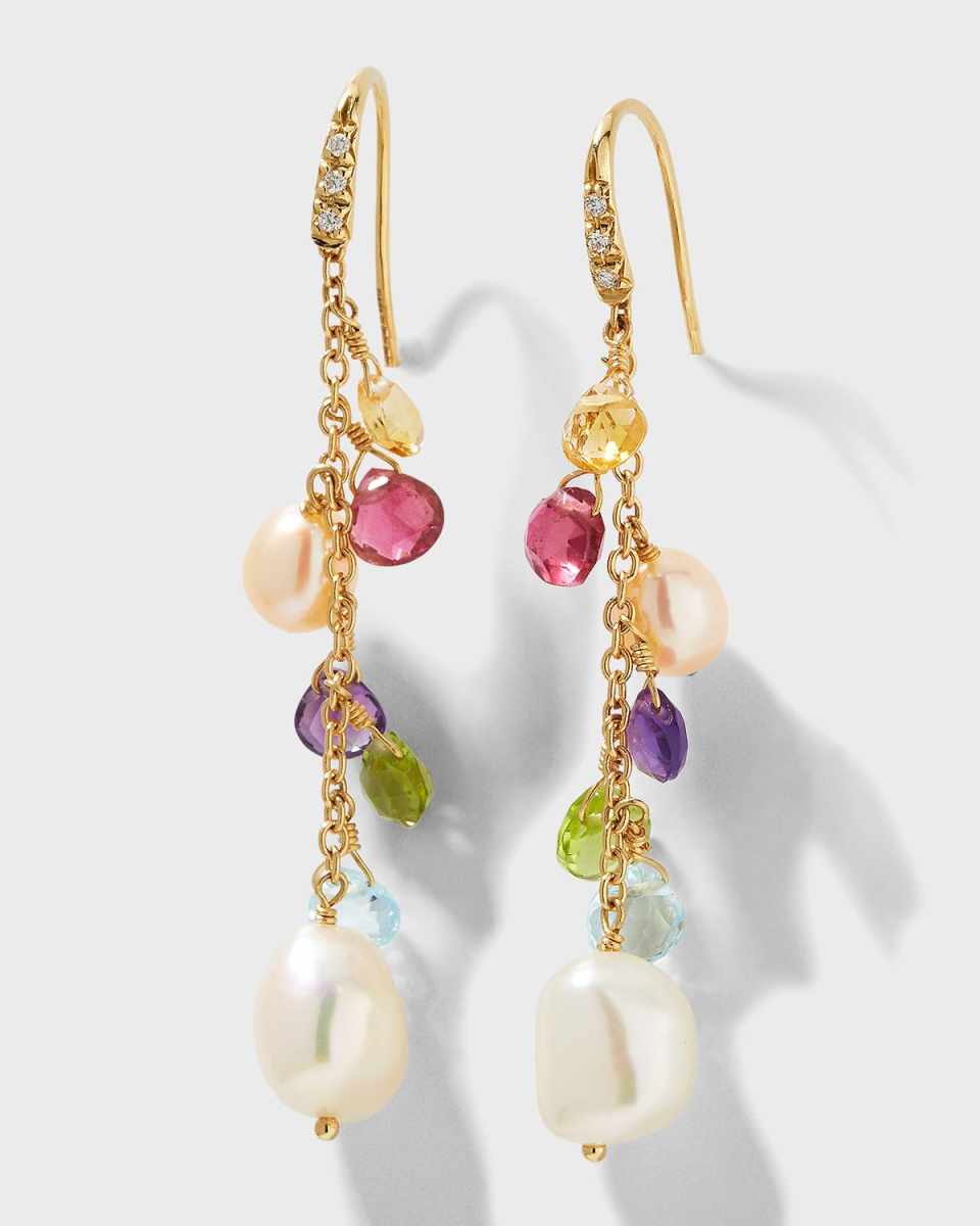 Marco Bicego earrings Approx. 1.9"L Handengraved 18karat gold Diamonds and semiprecious stones Naturally hued freshwater cultured pearls Diamond total carat weight: 0.05 For pierced ears Made in Italy