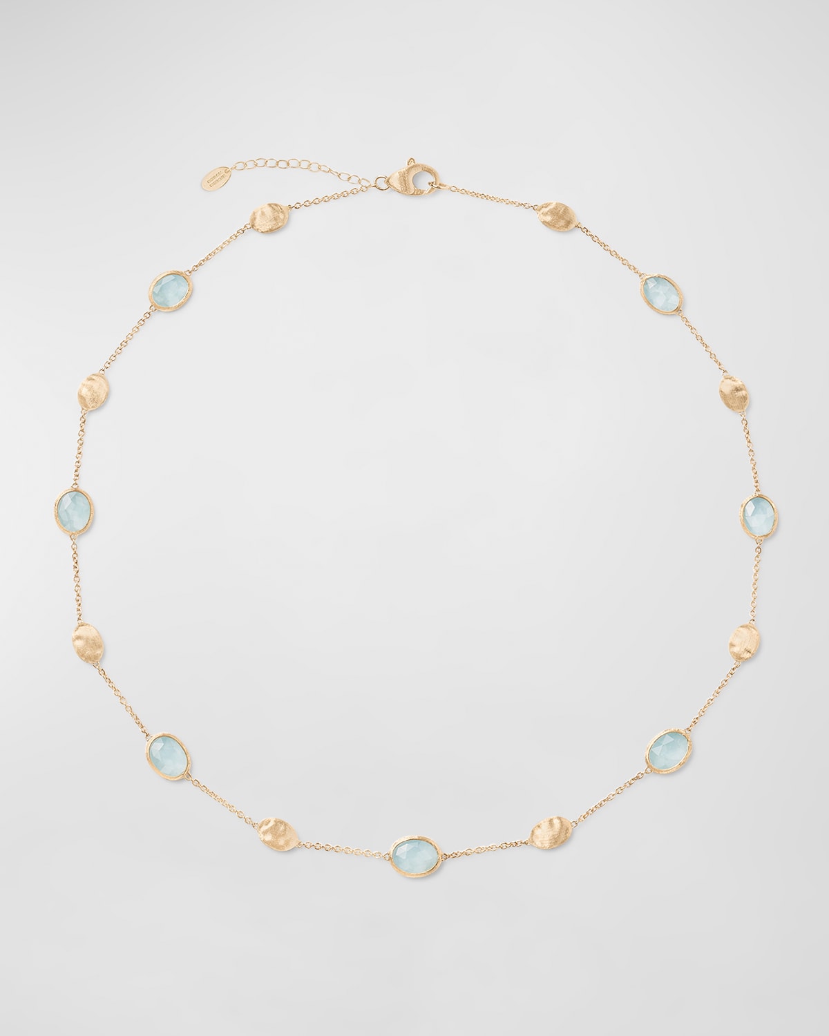 Marco Bicego necklace Necklace length: approx. 18 inches Handengraved 18karat yellow gold Aquamarine and bead stations Adjustable length Lobster clasp Made in Italy