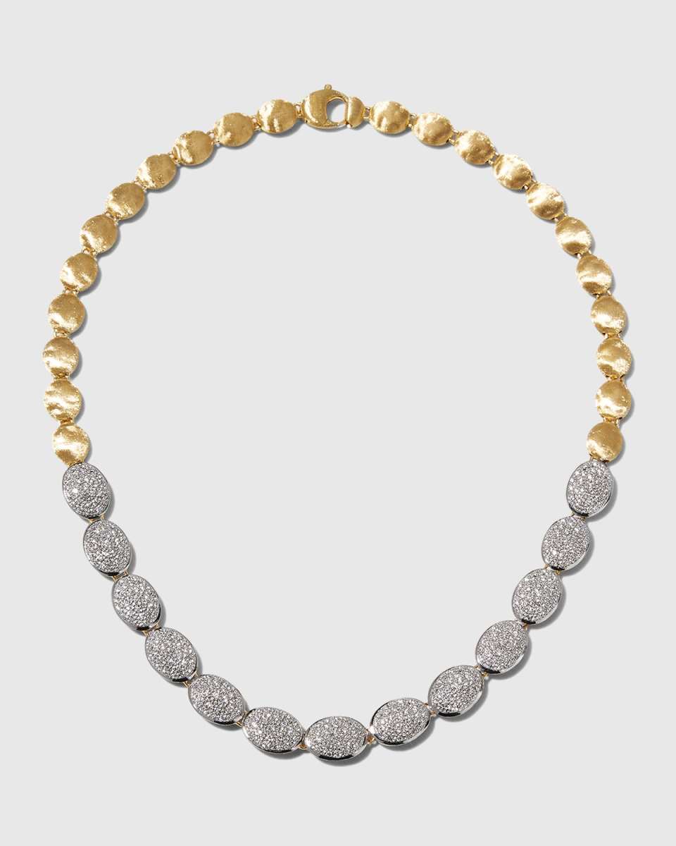 Marco Bicego collar necklace Necklace length: approx. 17 inches 18karat yellow and white gold Front half with pavé diamonds Lobster clasp Total carat weight: 2.86 Made in Italy
