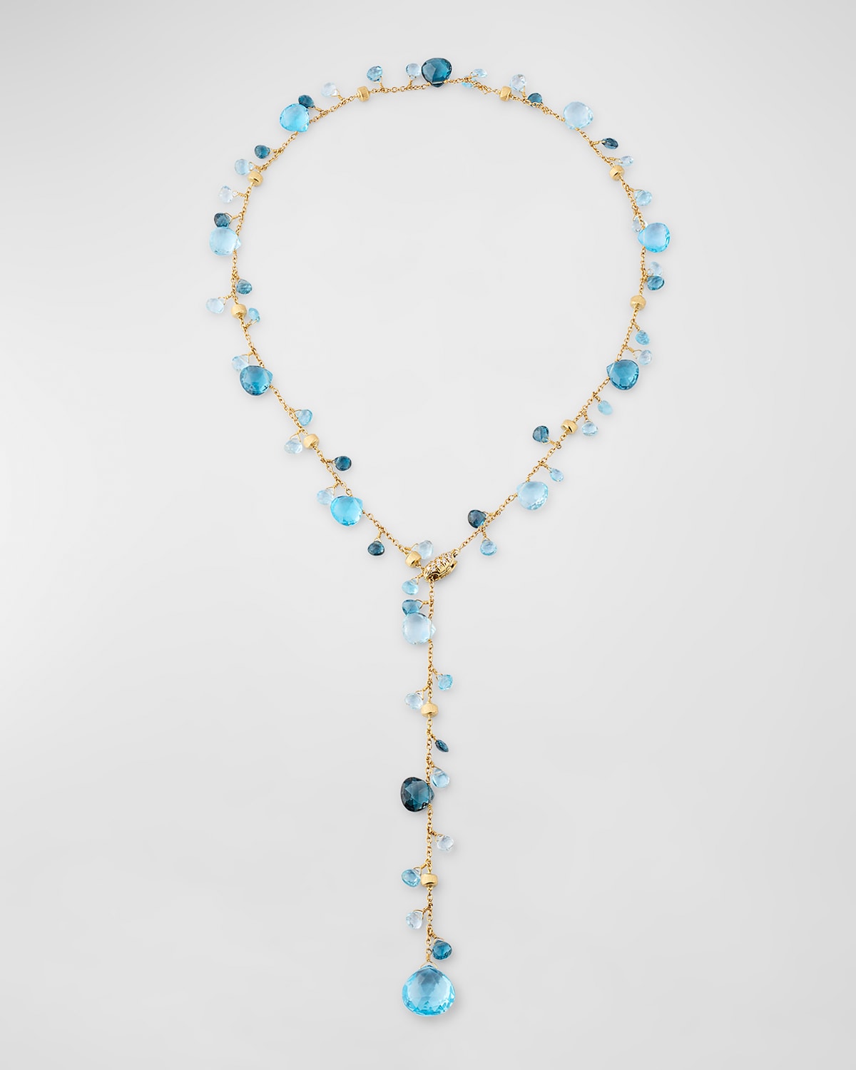 Marco Bicego lariat necklace Necklace length: approx. 17 inches (adjustable) 18karat yellow gold Mixed blue topaz White brilliantcut diamonds 0.10 total diamond carat weight Professional cleaning recommended Made in Italy