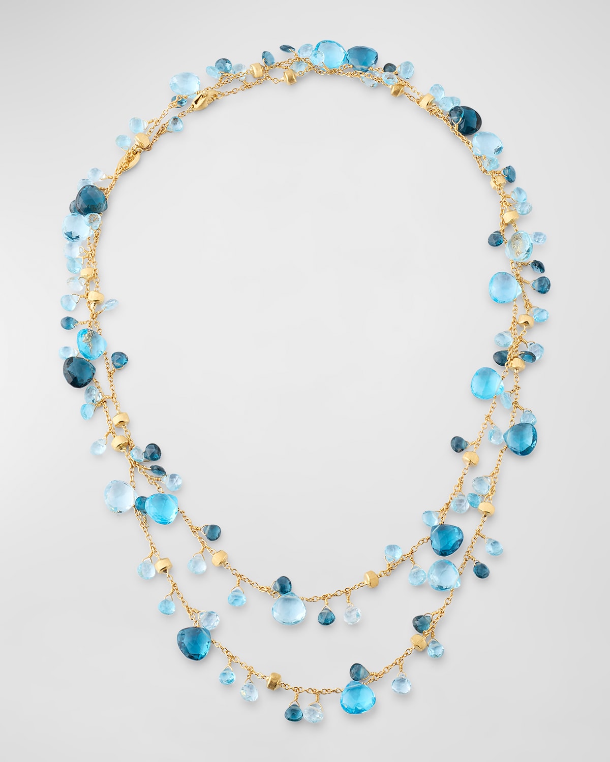 Marco Bicego necklace Necklace length: approx. 36 inches (adjustable) 18karat yellow gold Mixed blue topaz Lobster clasp Professional cleaning recommended Made in Italy