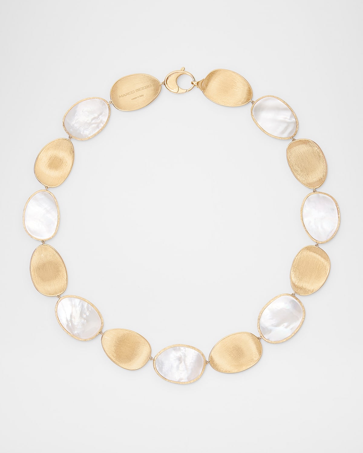 Marco Bicego necklace Necklace length: approx. 17.8 inches Handengraved 18karat yellow gold Seven motherofpearl stations Lobster clasp Made in Italy