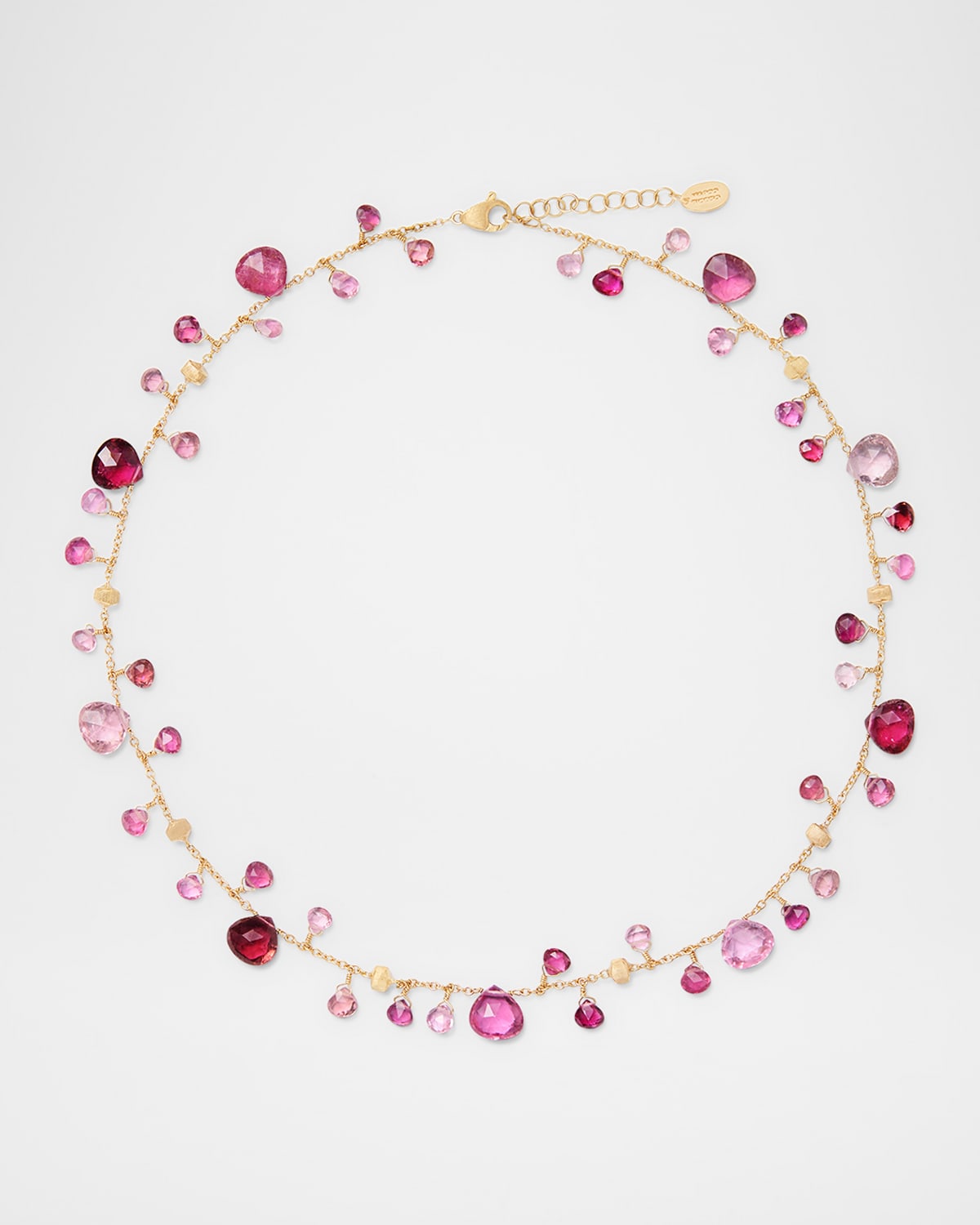 Marco Bicego strand necklace Necklace length: approx. 16.5 inches (Adjustable) Handengraved 18karat yellow gold Heartcut pink tourmaline Lobster clasp Made in Italy