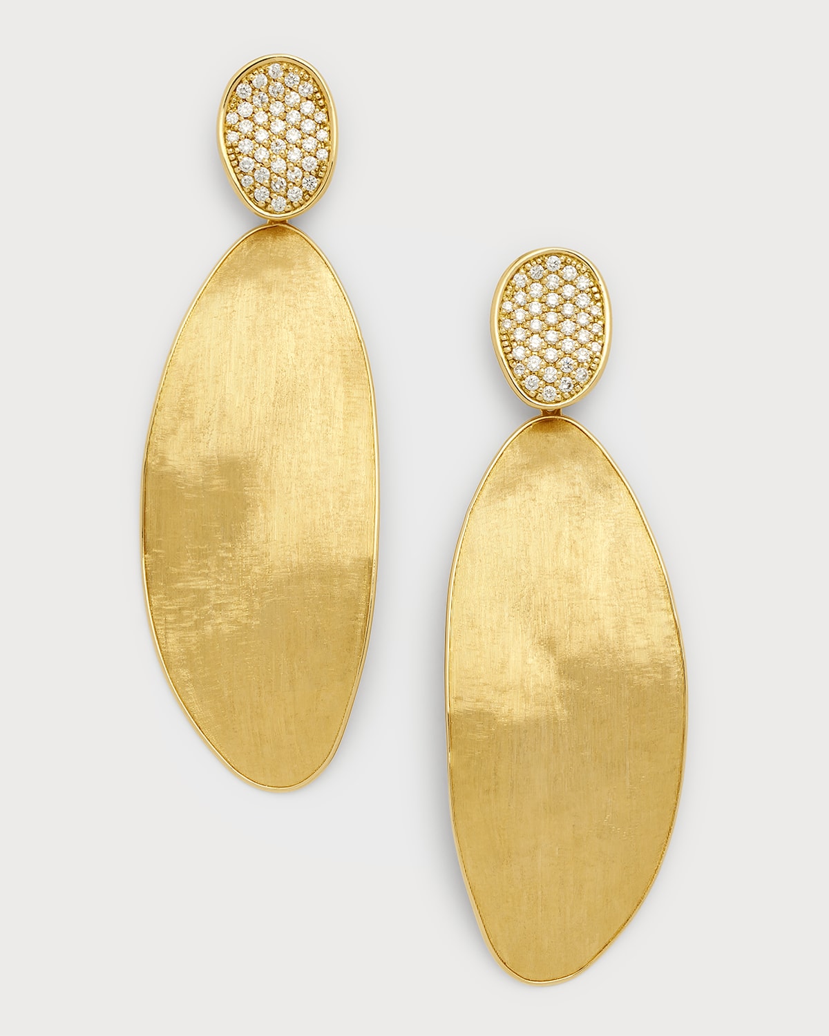 Marco Bicego earrings from the Lunaria Collection Handengraved 18karat yellow gold Posts with diamond pavé Total carat weight: 1.33 For pierced ears Made in Italy