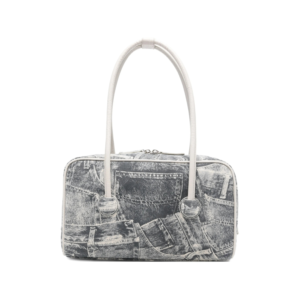 grey graphic print top handle zip fastening This piece comes complete with a protective dust bag.