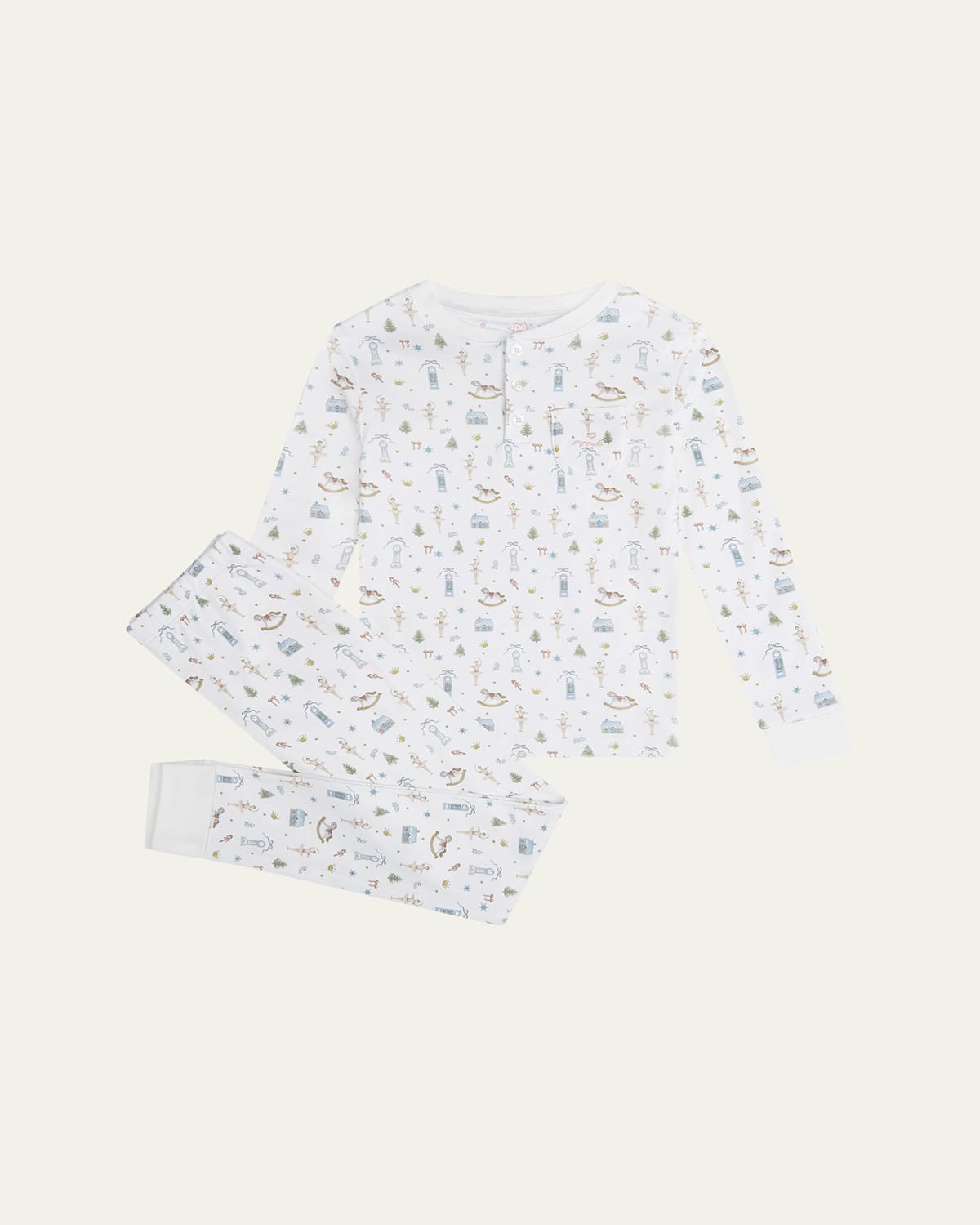 Marie Chantal pajamas are decorated with a whimsical fairy print and delicate picot trim along the edges Crew neckline; button front Long sleeves Chest patch pocket Elasticized waistband Banded cuffs and hem Pullon style Organic cotton Machine wash Made in Portugal
