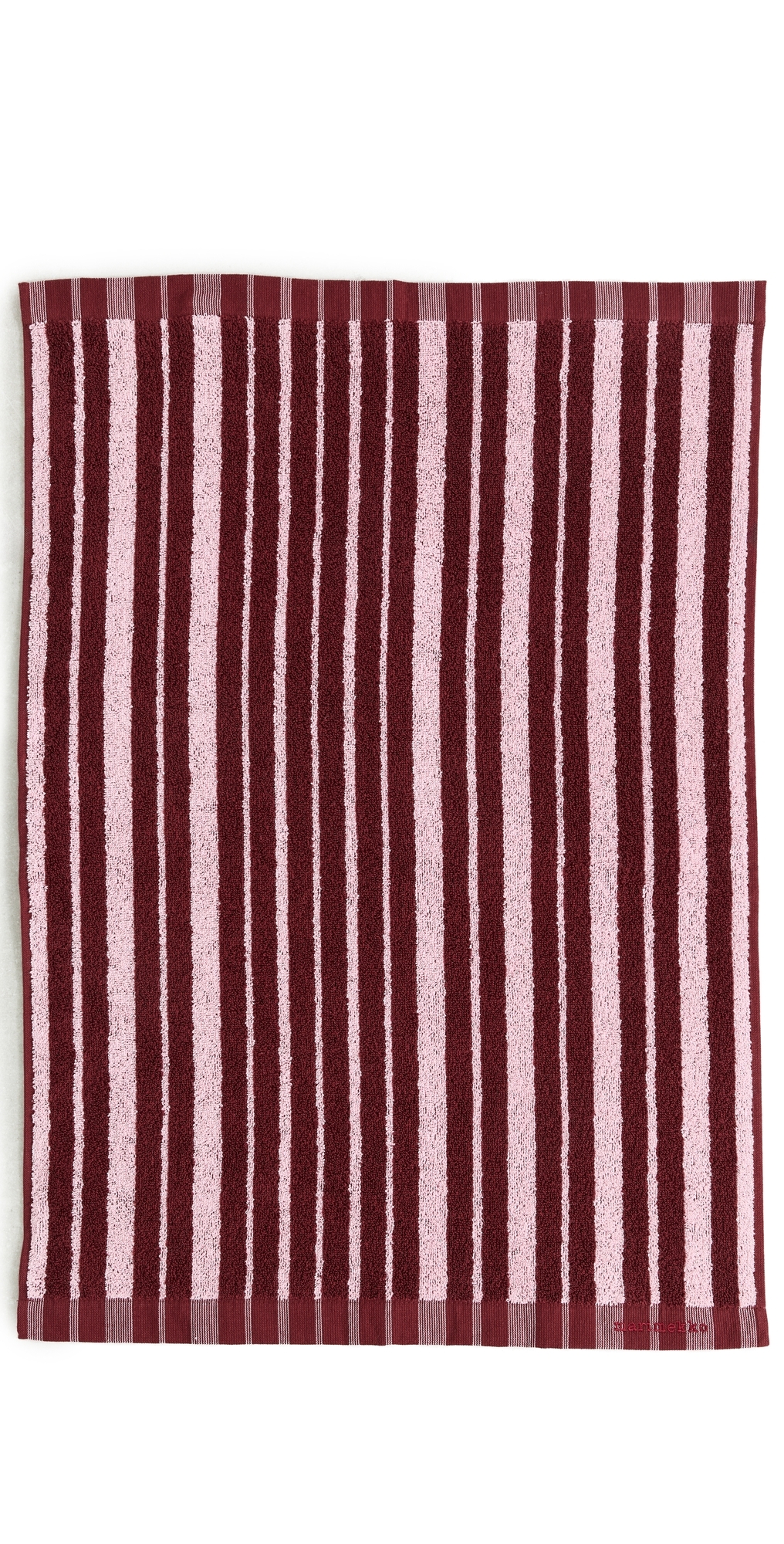 Fabric: Towel terry cloth. Stripe pattern. Logo embroidered at hem. Shell: 100% cotton. Wash warm. Made in Portugal. Measurements: Width: 19.75in / 50cm Length: 28.25in / 72.0cm