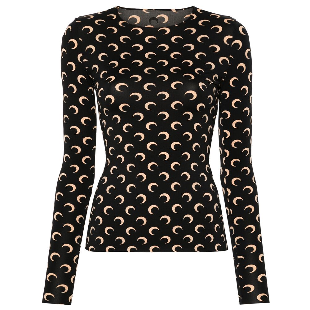 black/beige recycled polyamide blend stretch-design signature Moonogram pattern crew neck long sleeves straight hem