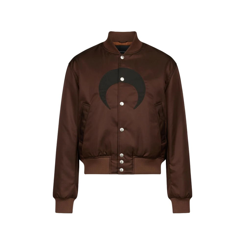 brown moon motif button fastening ribbed trims side welt pockets long sleeves