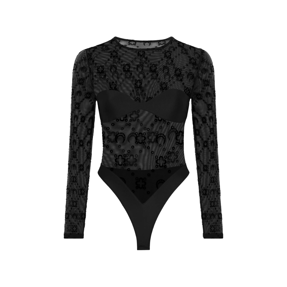 black flocked finish long sleeve round neck Moonogram pattern Just a reminder that this piece must be tried on over your own garments.