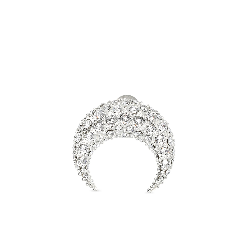 silver-tone crescent moon pendant rhinestone embellishment post-back fastening engraved logo for pierced ears This is a single earring.