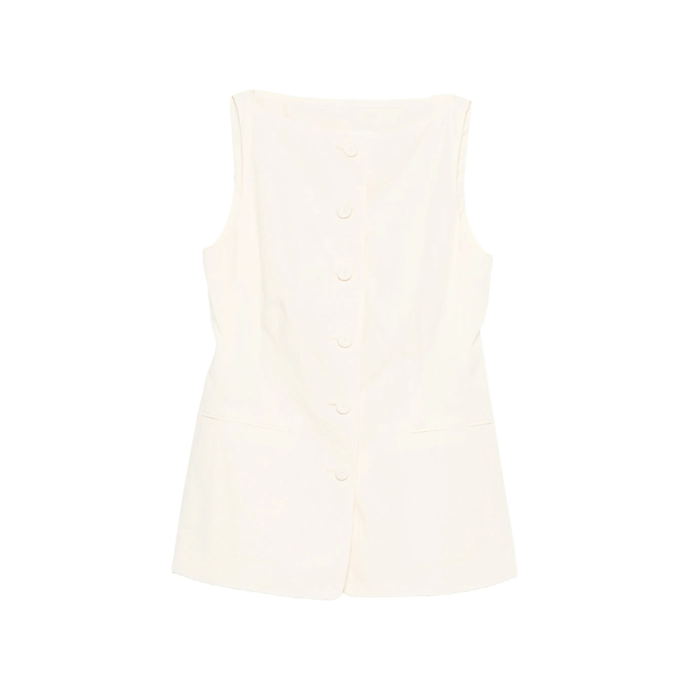 ivory button fastening sleeveless square neck panelled construction