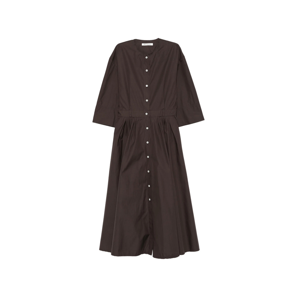 dark round neck button fastening three-quarter sleeves pleated skirt