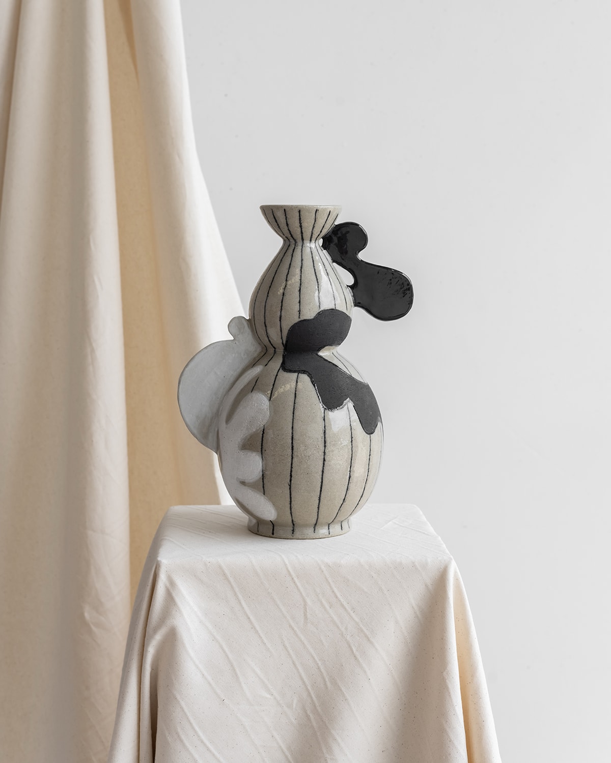 Handcrafted vase made of stoneware. Can be styled with greenery or in a vignette with other complementing vessels. Approx. 10.2"W x 11.8"T Item Weight (Lbs.): 4.8 Hand wash only, dry with a soft cloth, and store in the gift box when not in use. Sudden changes in temperature can result in damage. Please avoid sudden extreme temperature changes to reduce the possibility of thermal shock. This form is watertight. Imported