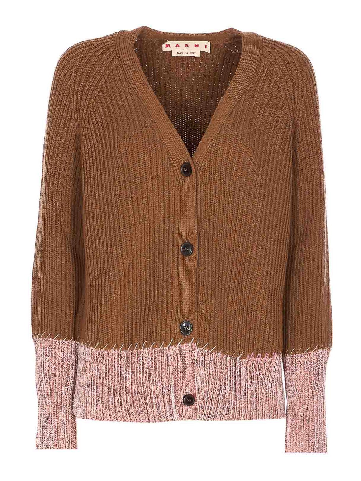 Cardigan en maille beige Marni avec boutons frontaux, col en V et manches longues Nom de la couleur du créateur: marron