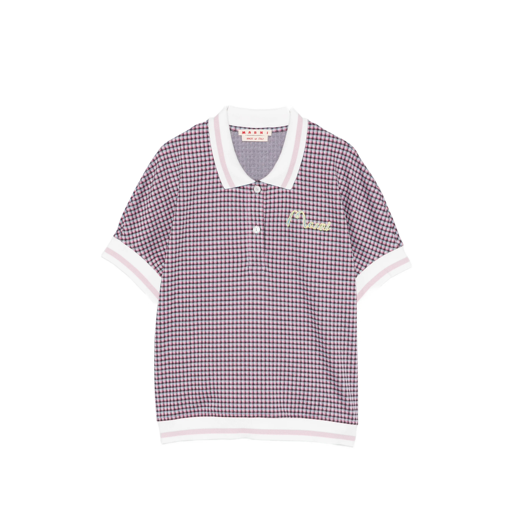 light pink and multicolour check pattern embroidered logo point collar button fastening