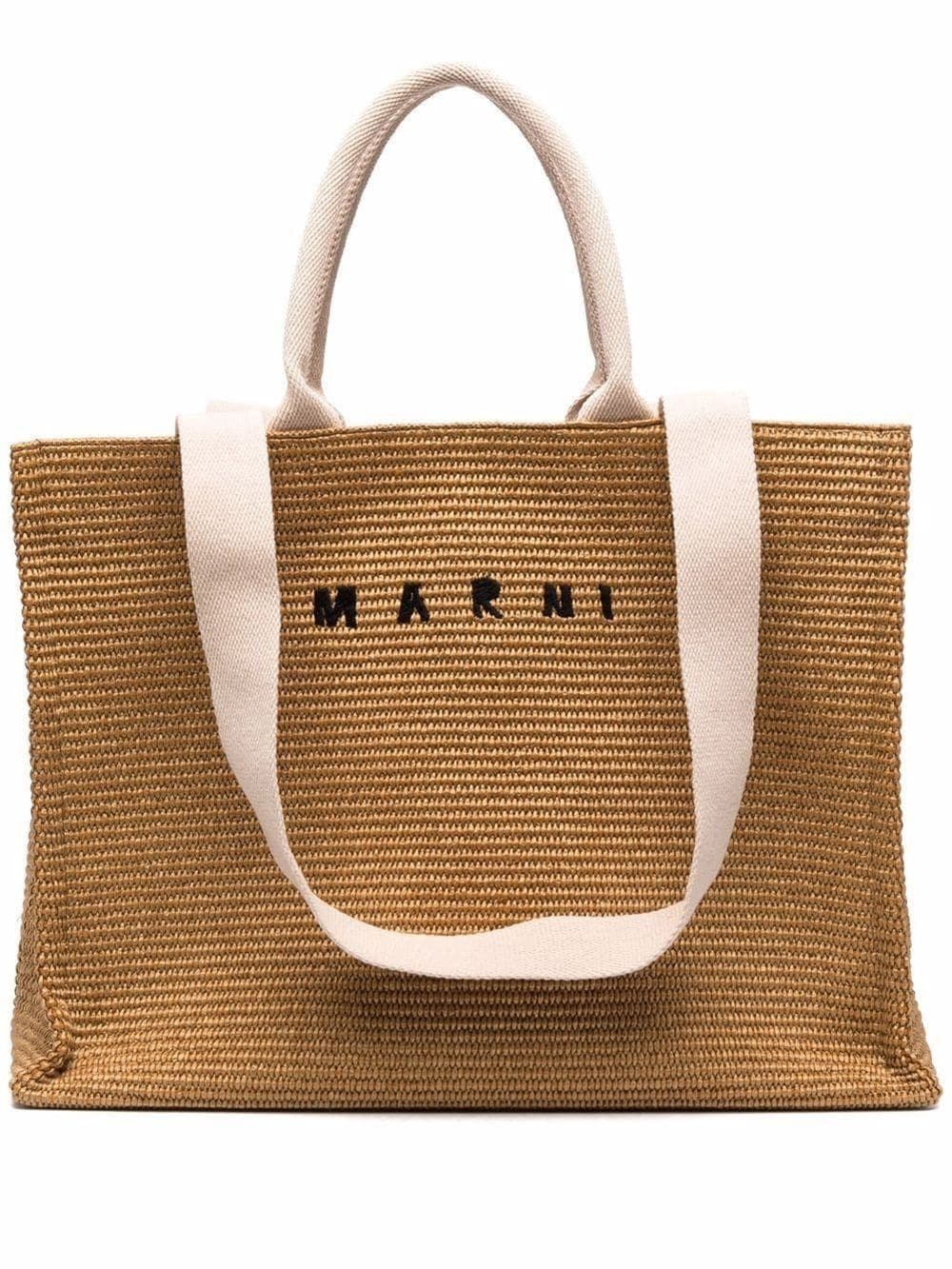sienna brown cotton embroidered logo to the front two rounded top handles internal zip pocket two long top handles